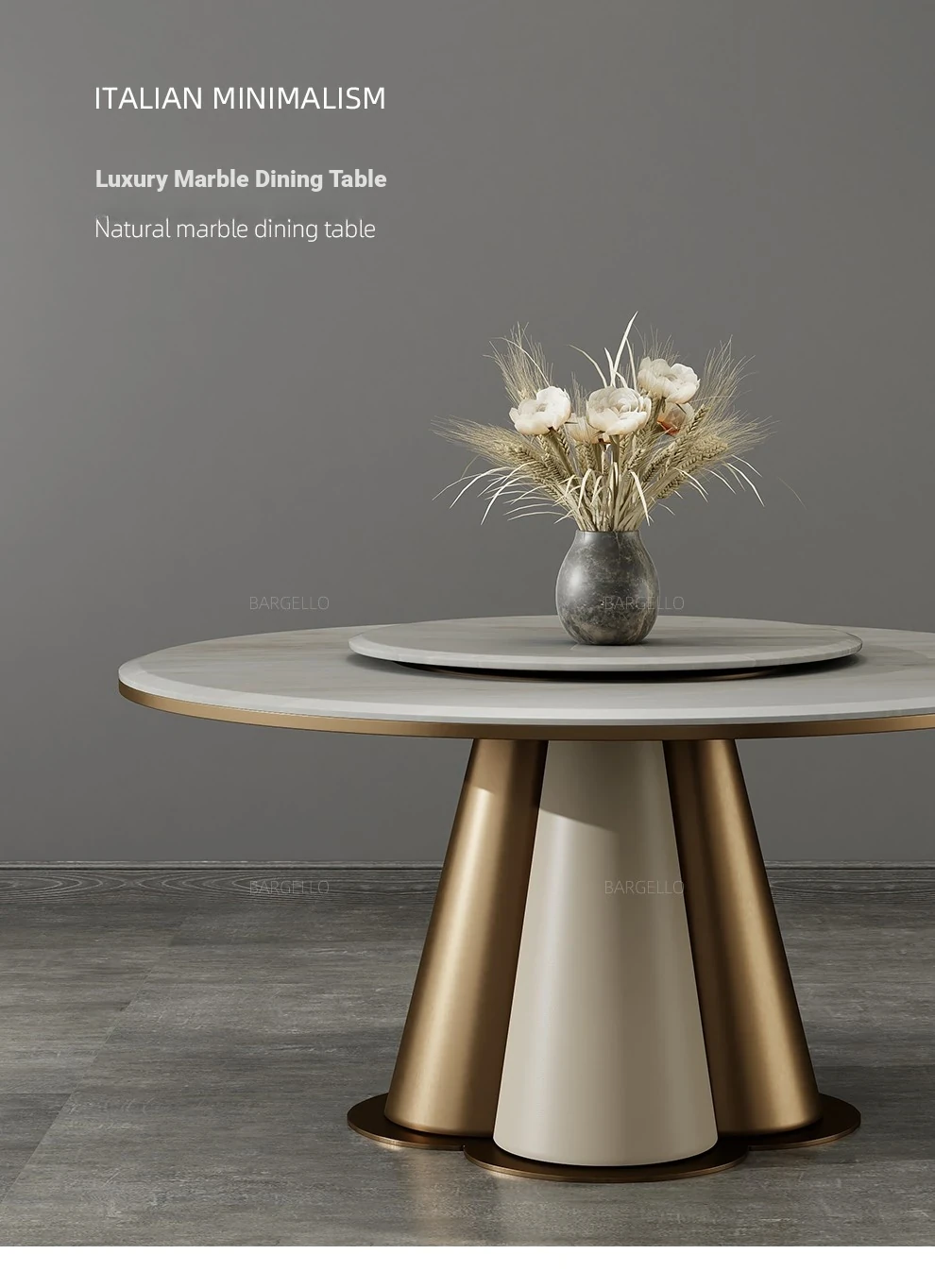Elegant Italian Minimalist Round Natural Marble Dining Table - Perfect for Modern Villas and Spacious Flats, Combining Design and Functionality for a Luxurious Dining Experience.