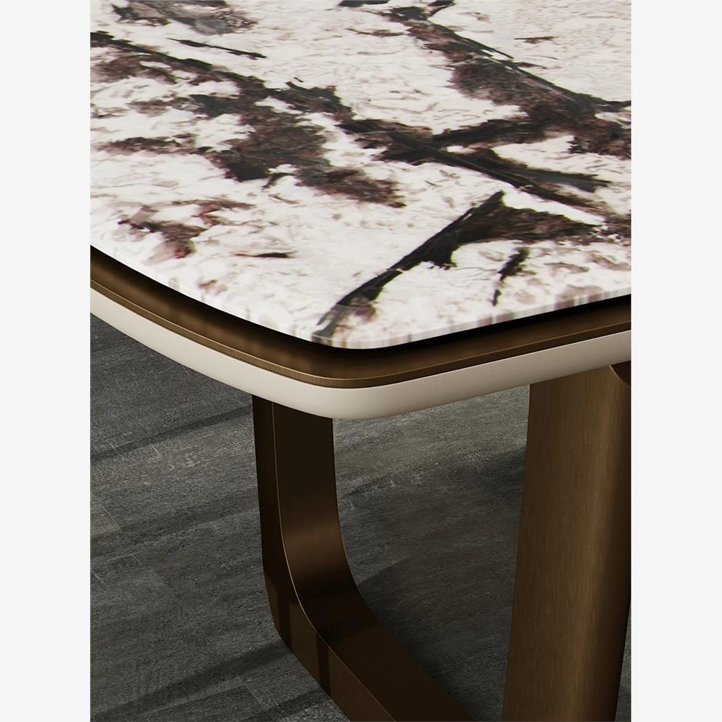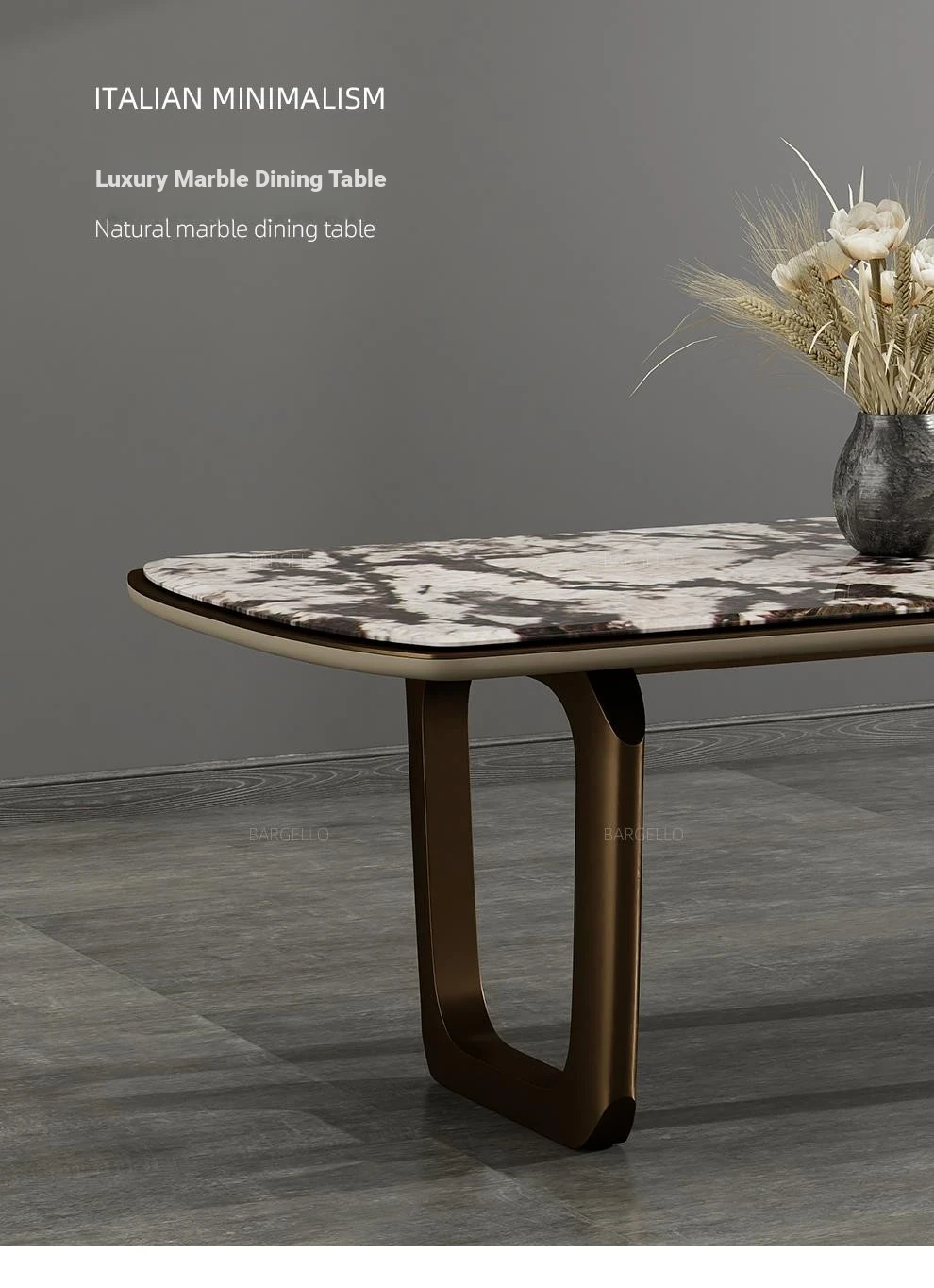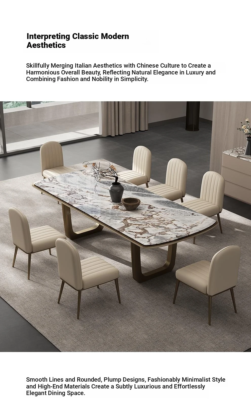 Elegant Italian Minimalist Villa Dining Room: Solid Wood and Marble Dining Table for Luxurious Open-Concept Living - Rectangle Design for Sophisticated Dining Experience