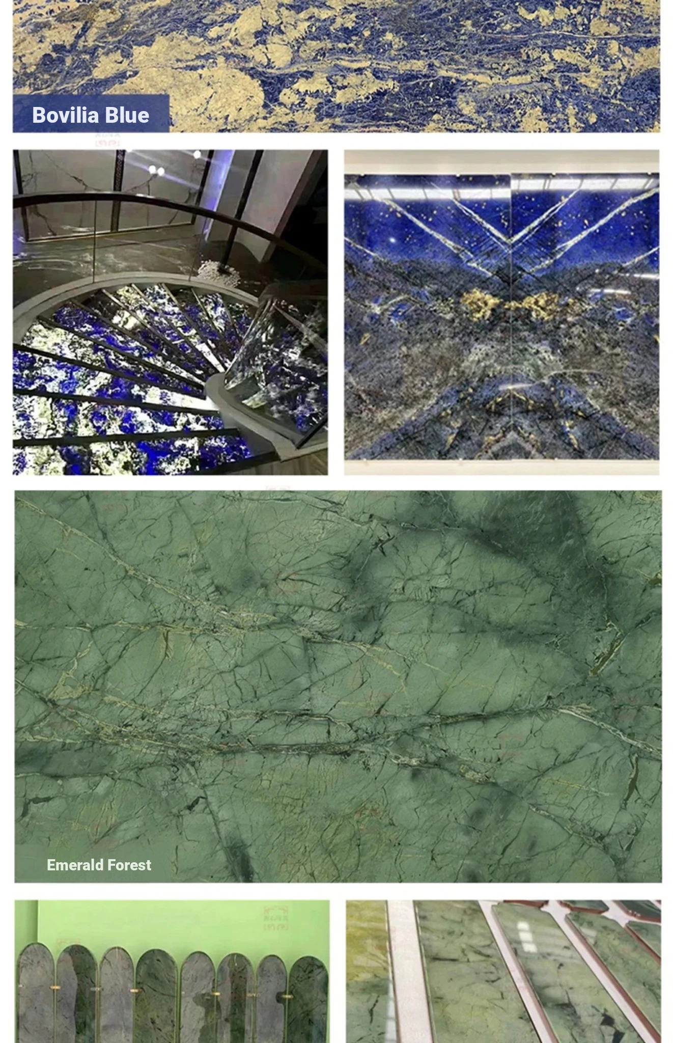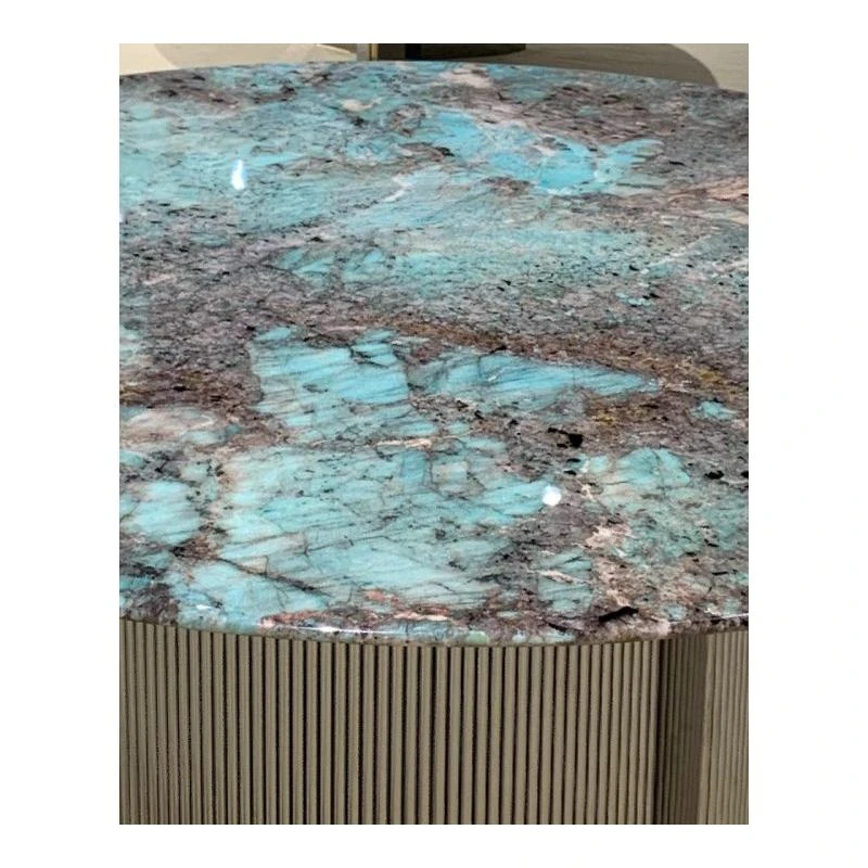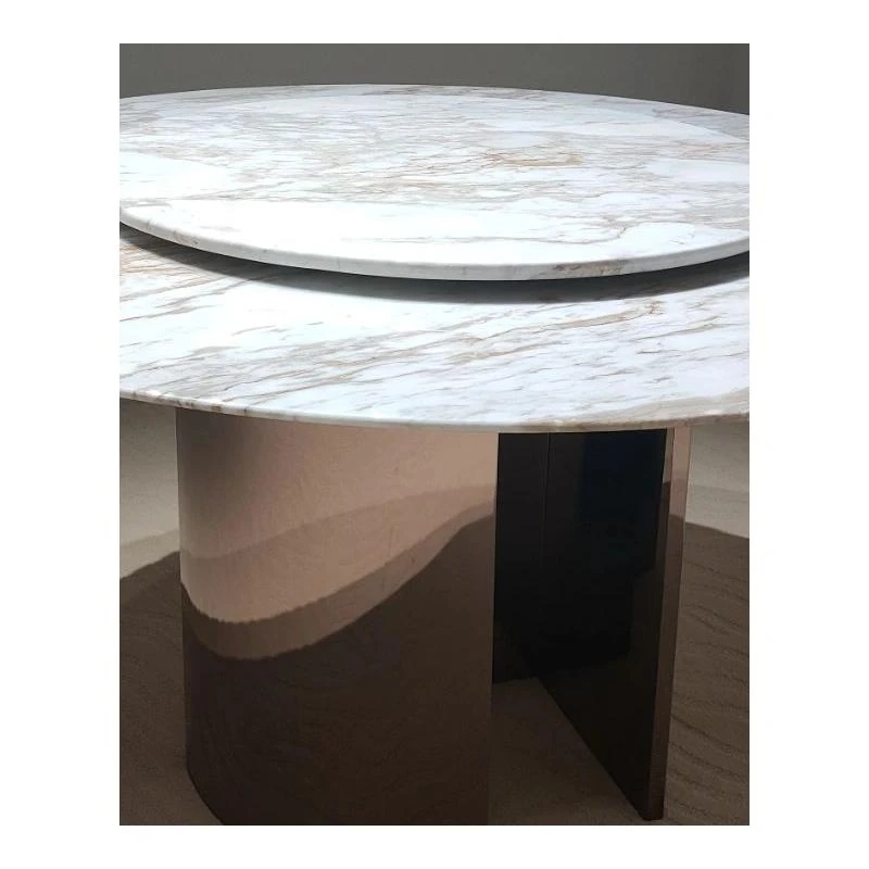 Elegant Italian Natural Marble Blue Jade Round Dining Table Set - High-End Designer Circular Dining Table with Rotating Tray for a Luxurious Dining Experience