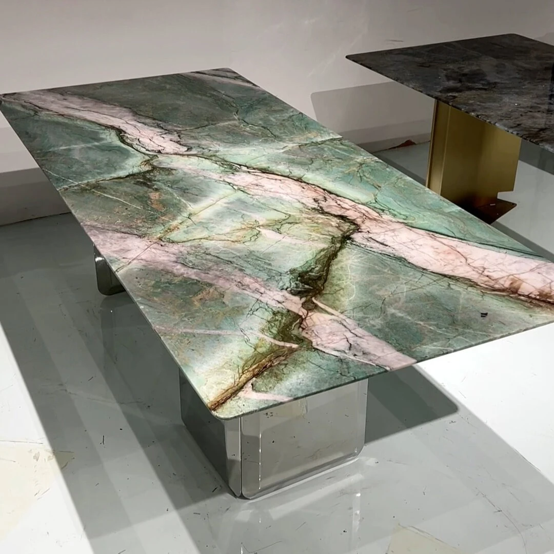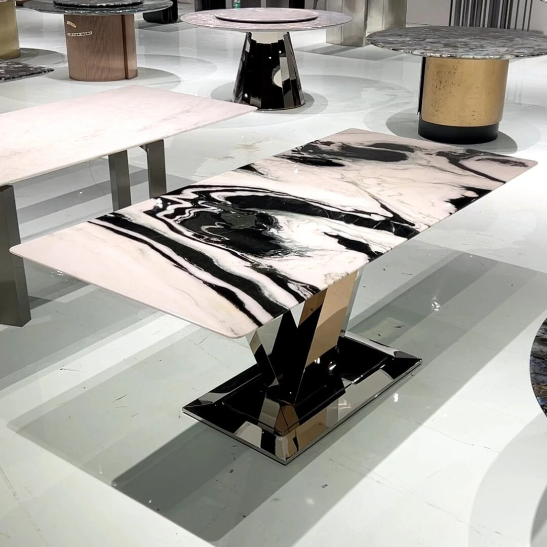 Elegant Italian-Inspired Natural Marble Dining Table - Modern Minimalist Design for Villas, Ideal for Upscale Homes, Perfect Long Dining Table for Luxurious Gatherings