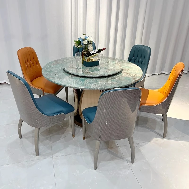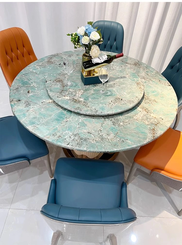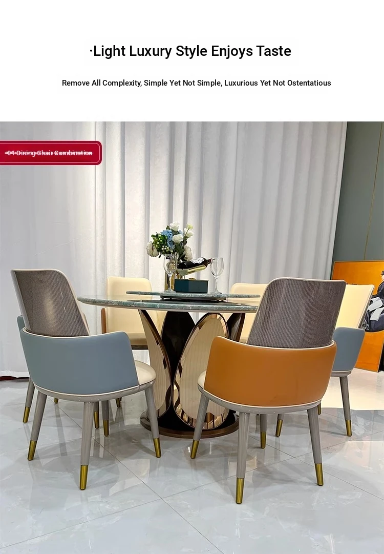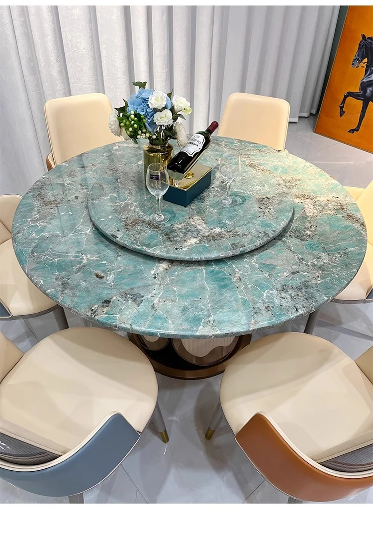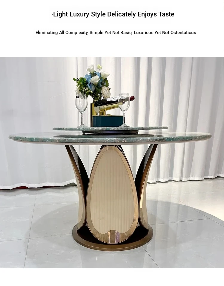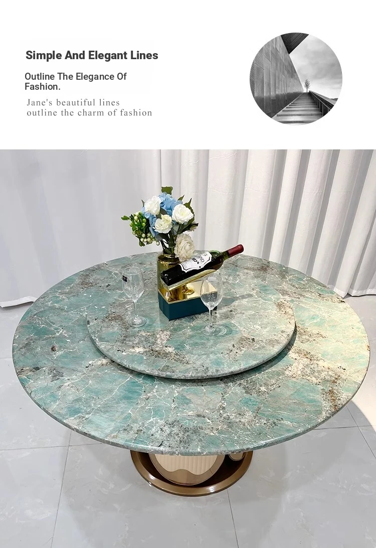 Elegant Marble Dining Table and Chair Set - Italian Luxury Villa Design with Stainless Steel Base for Spacious Living Rooms