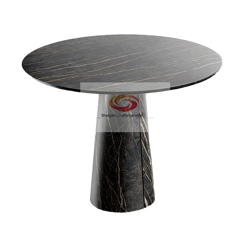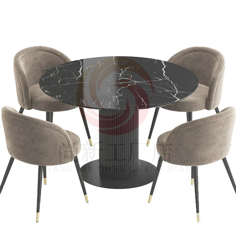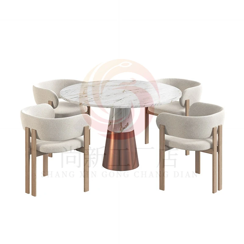 Elegant Marble Dining Table and Chair Set - Modern Minimalist Design for High-End Restaurants and Stylish Showroom Meeting Spaces, Perfect Small Round Table for Sophisticated Dining Experiences.