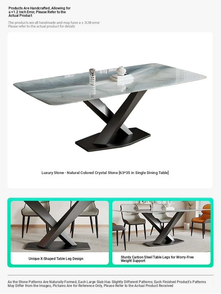 [Luxury Stone-Natural Color Crystal Stone] 62.99in Single Dining Table