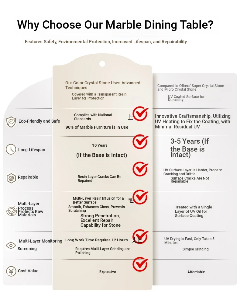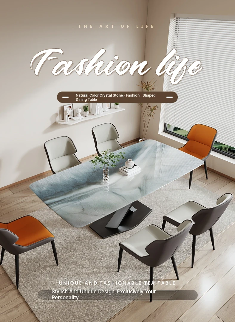 [Luxury Stone-Natural Color Crystal Stone] 70.87in Single Dining Table