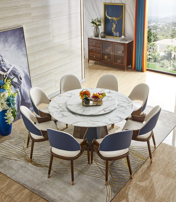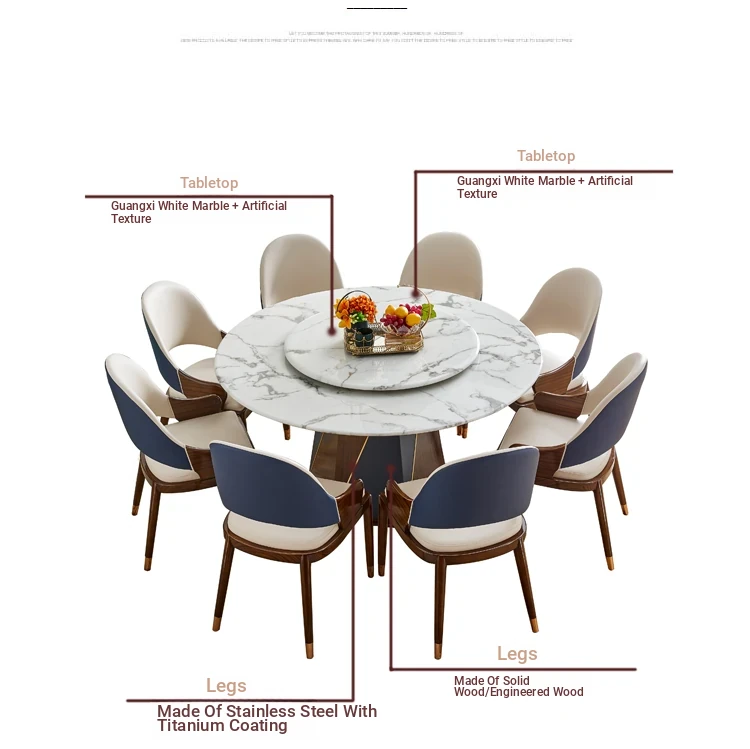 One table, eight chairs, 62.99 ins with 39.37 in turntable