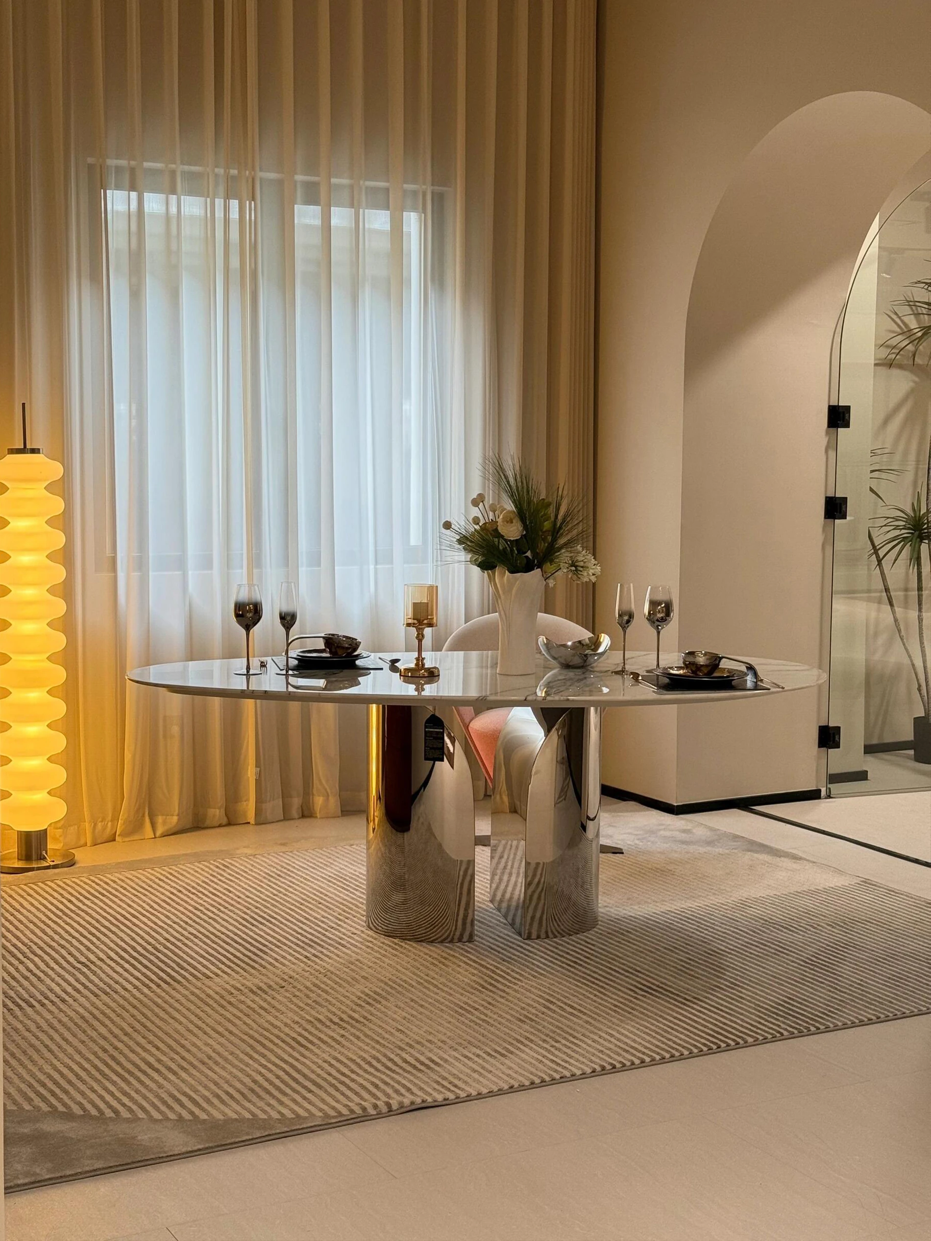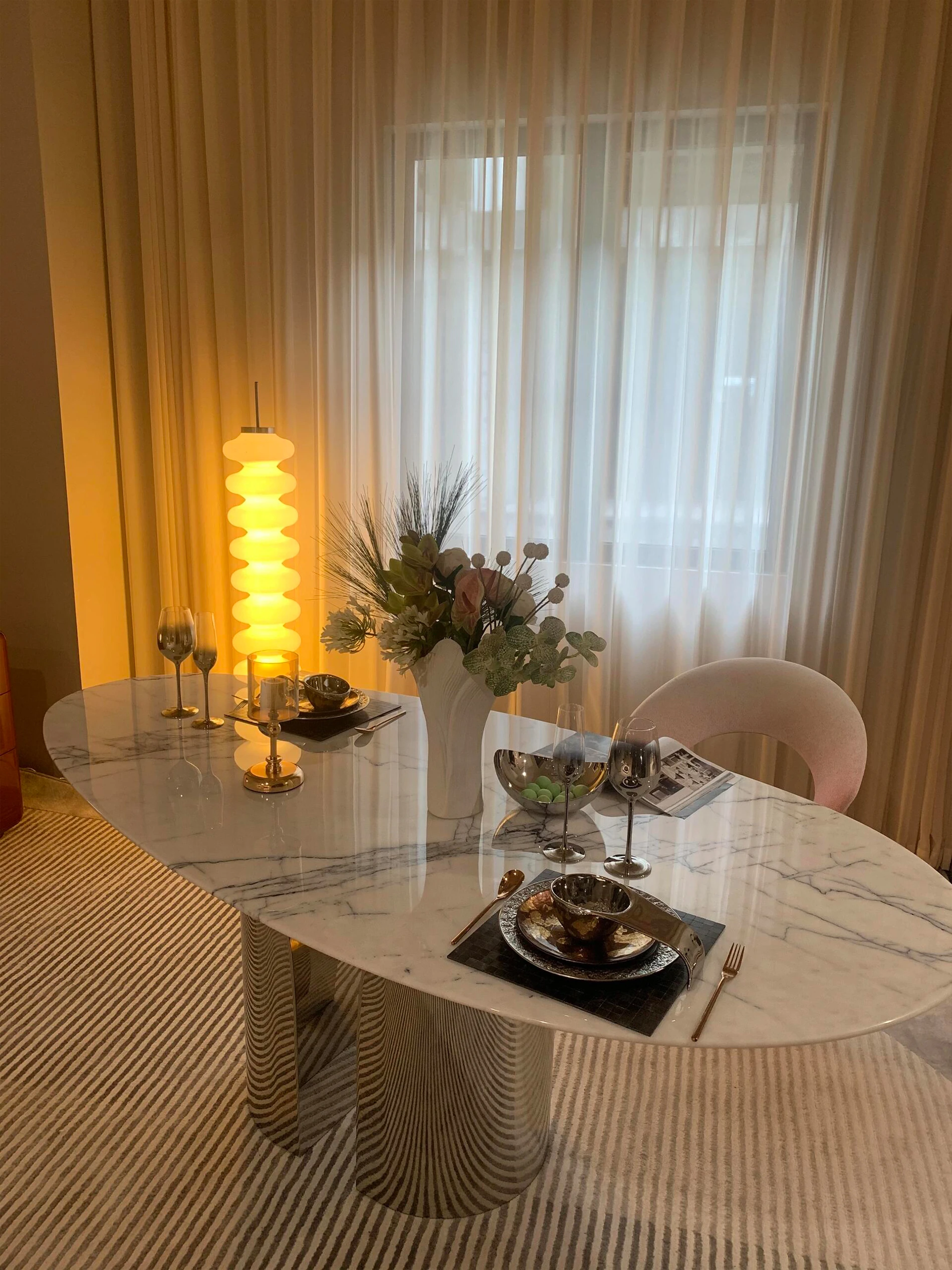 94.49in*39.37in +6 chair fragrant snow plum luxury stone (10 for one fake)