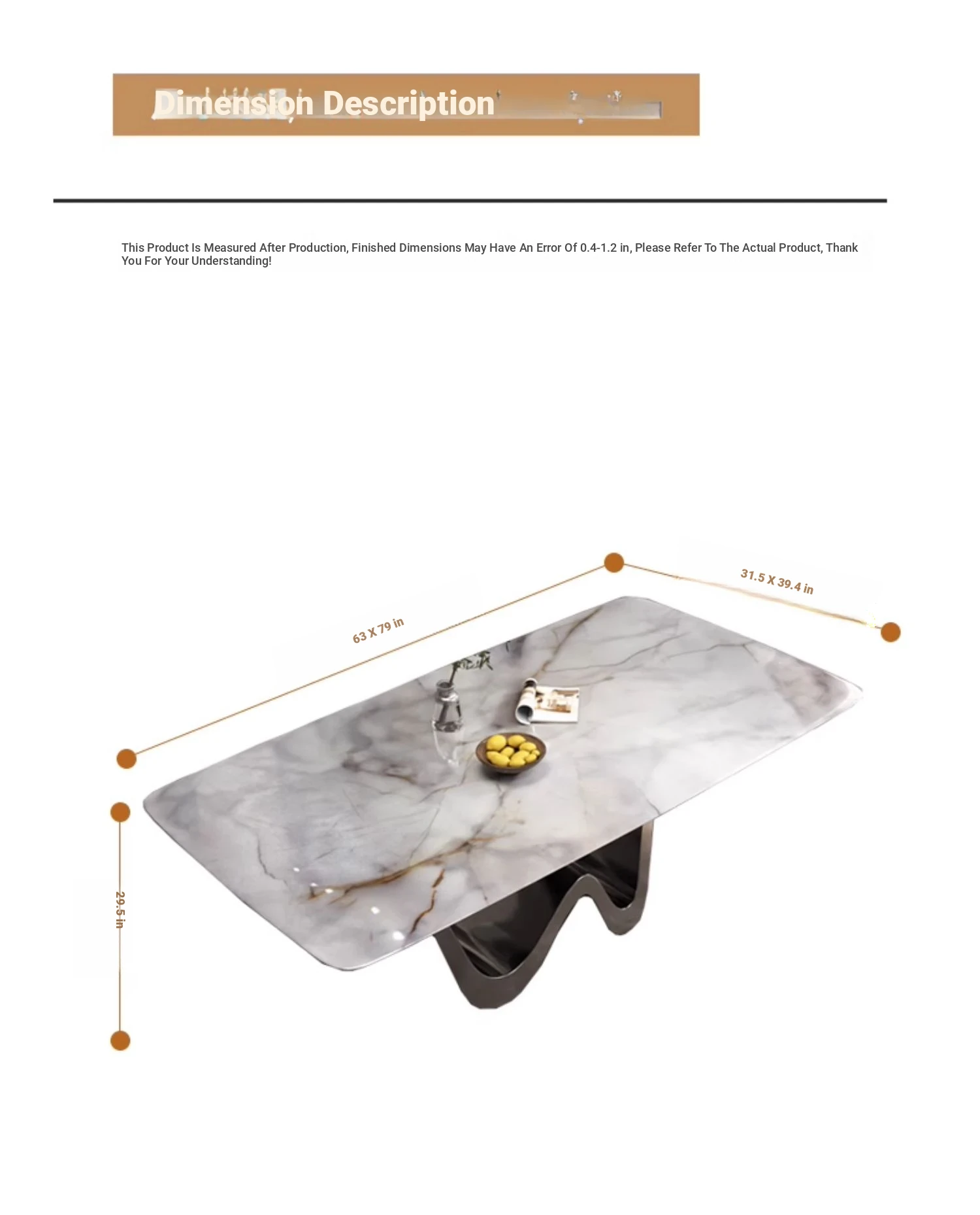[1.34in thickened full-support solid wood bottom plate + stainless steel bottom frame] 78.74in*39.37in single dining table