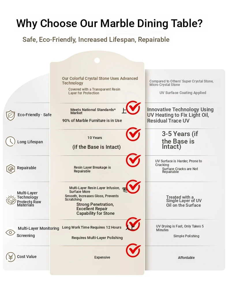 [Luxury stone-natural color crystal stone] 70.87in*35.43in single dining table