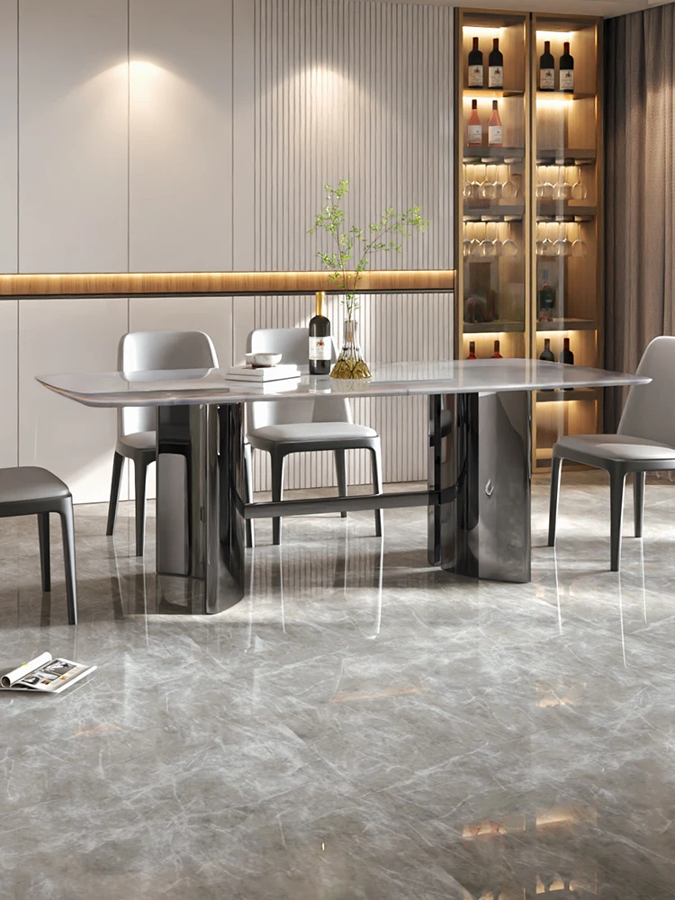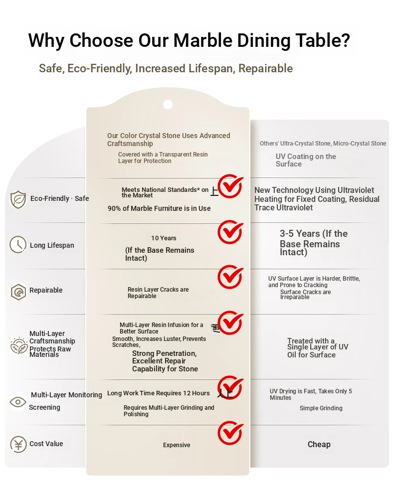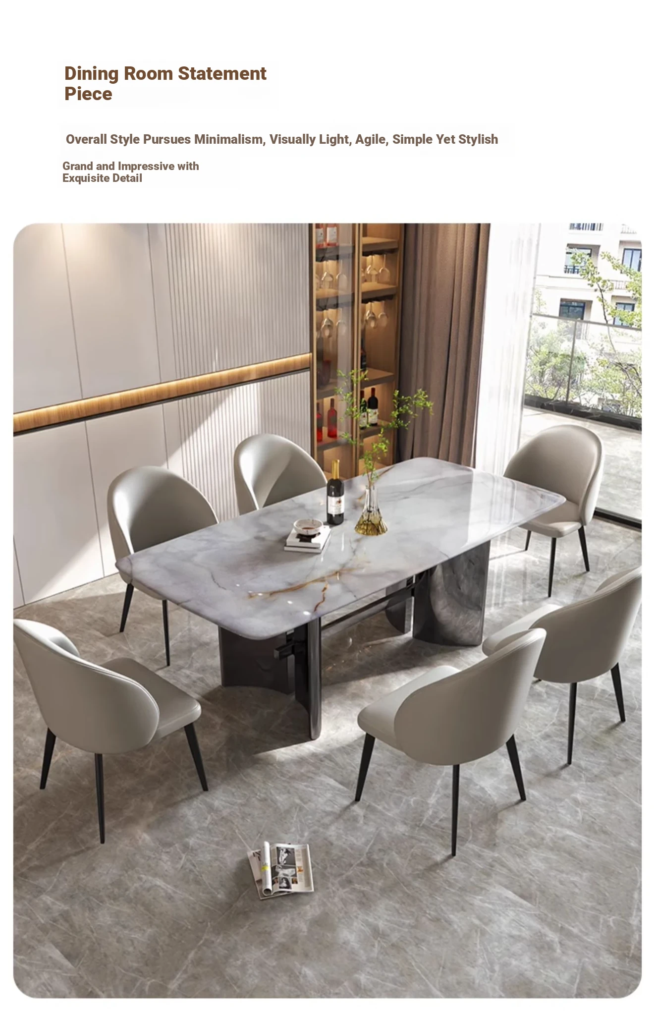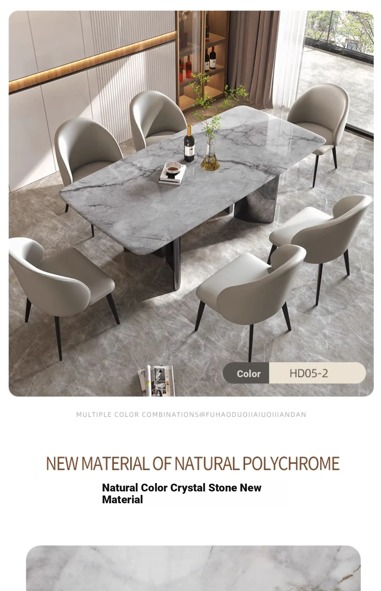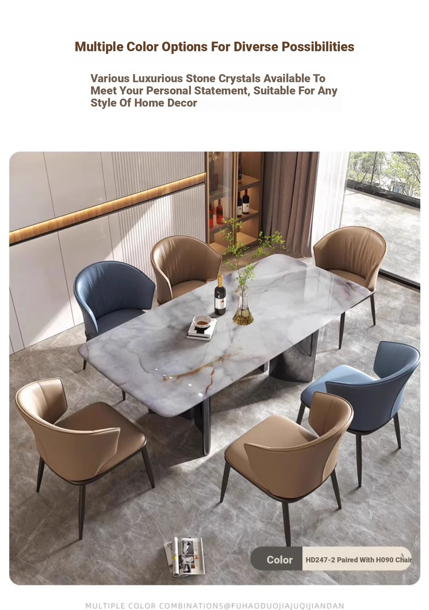 [Luxury stone-natural color crystal stone + anti-oxidation stainless steel frame] 62.99in*35.43in single dining table