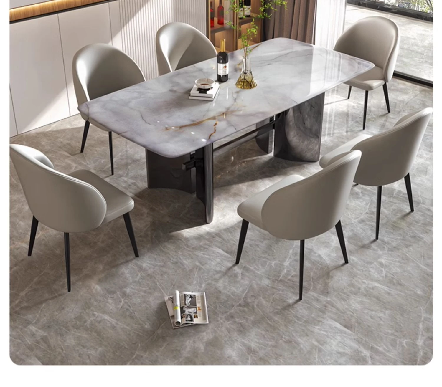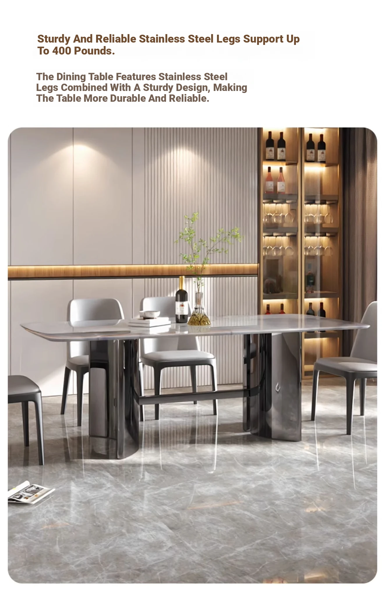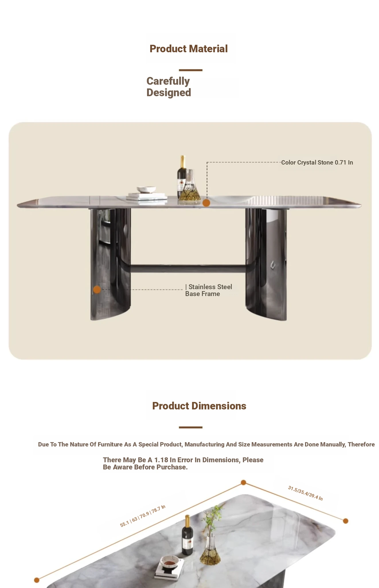 [Luxury stone-natural color crystal stone + anti-oxidation stainless steel frame] 78.74in*39.37in single dining table