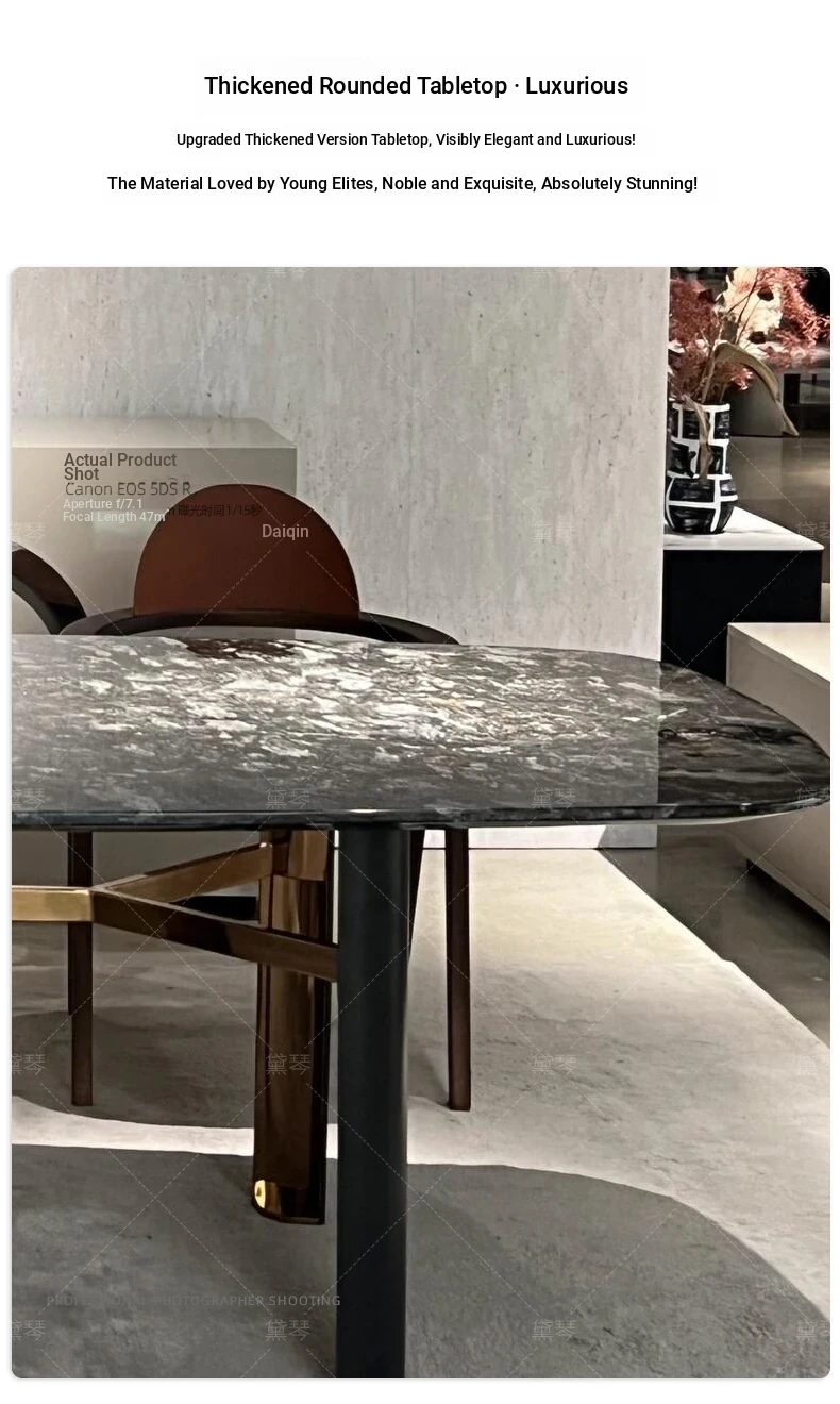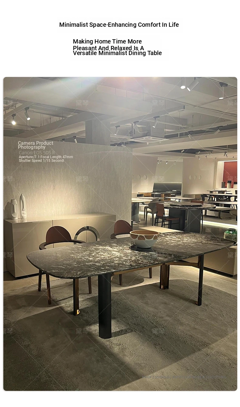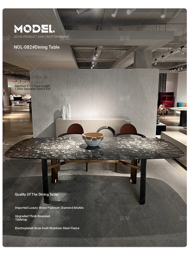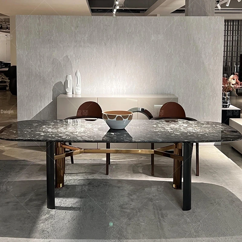 Elegant Natural Marble Dining Table - Italian Minimalist Design with Platinum and Diamond Luxury Finish - Modern Long Table for Home Dining