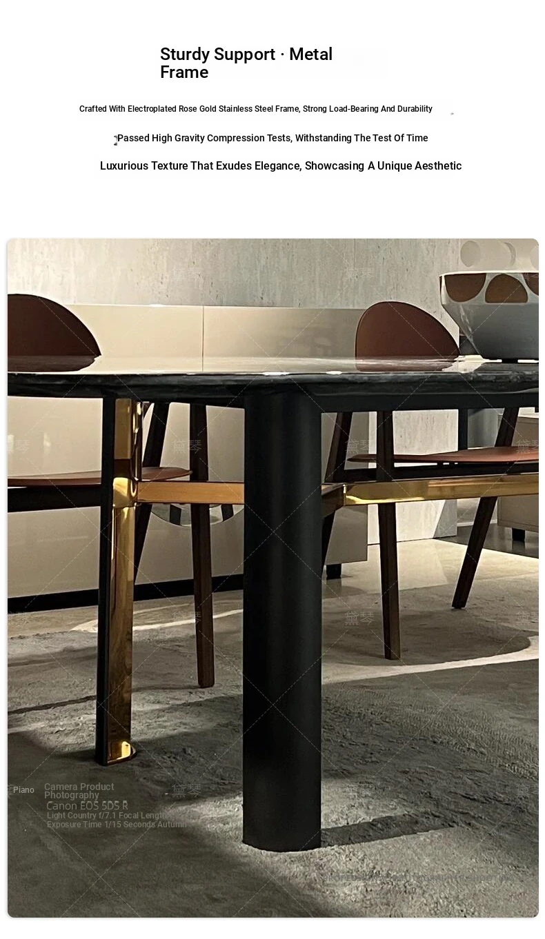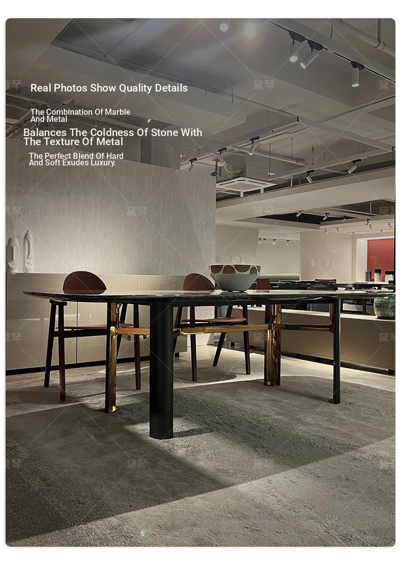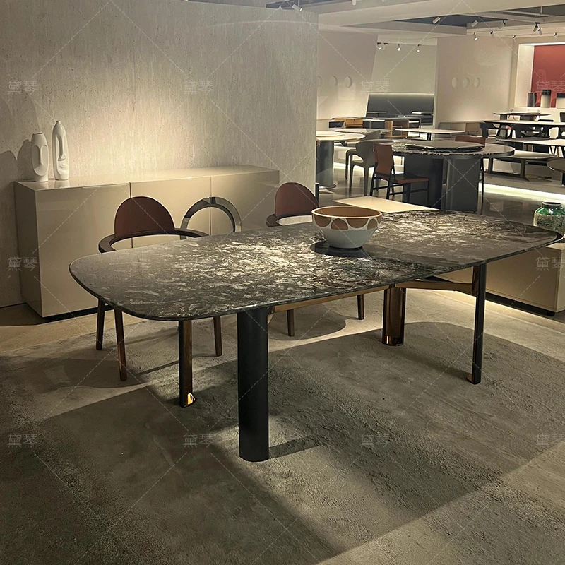 Elegant Natural Marble Dining Table - Italian Minimalist Design with Platinum and Diamond Luxury Finish - Modern Long Table for Home Dining