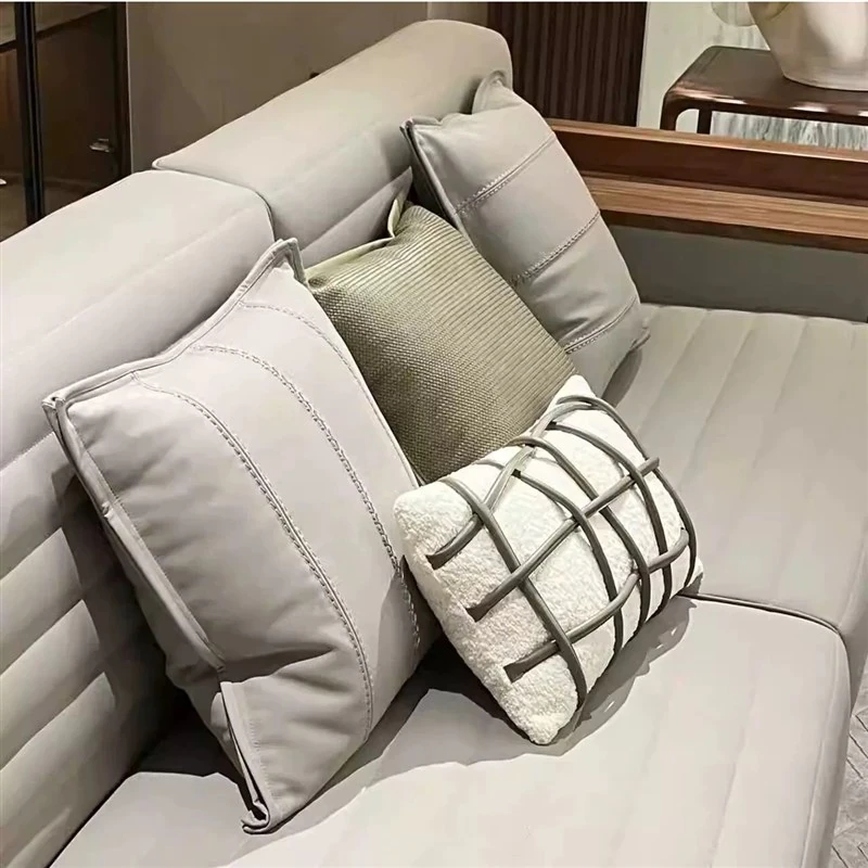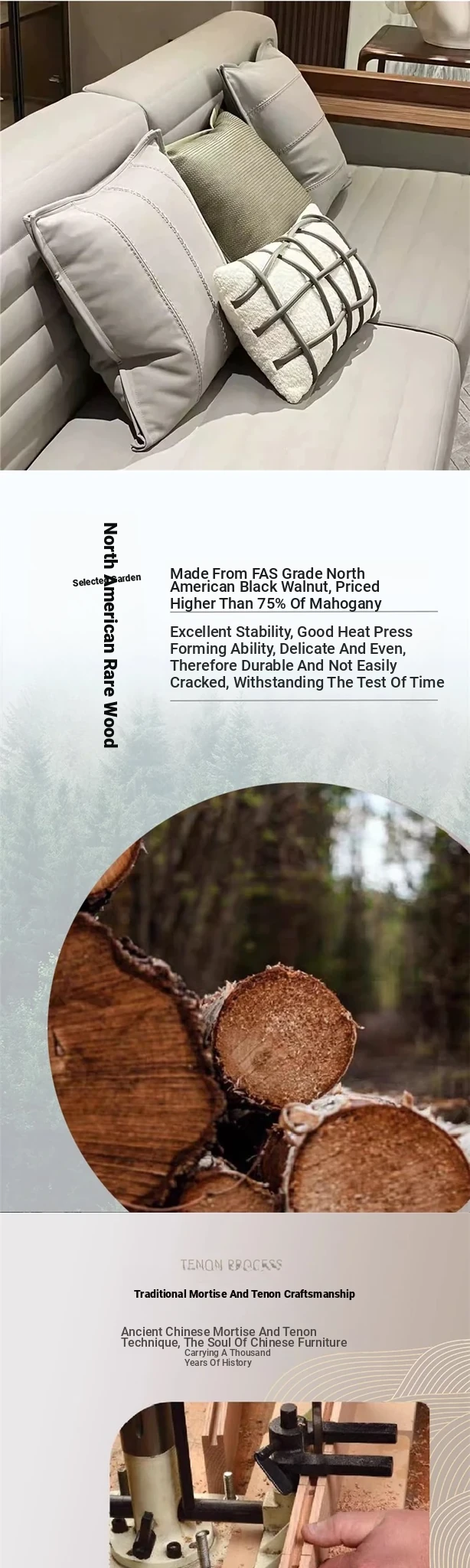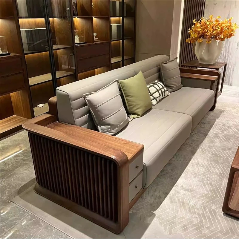 Elegant New Chinese Style Solid Wood Sofa Set in Black Walnut - Luxurious Minimalist Leather Upholstered Furniture for Villa Living Room