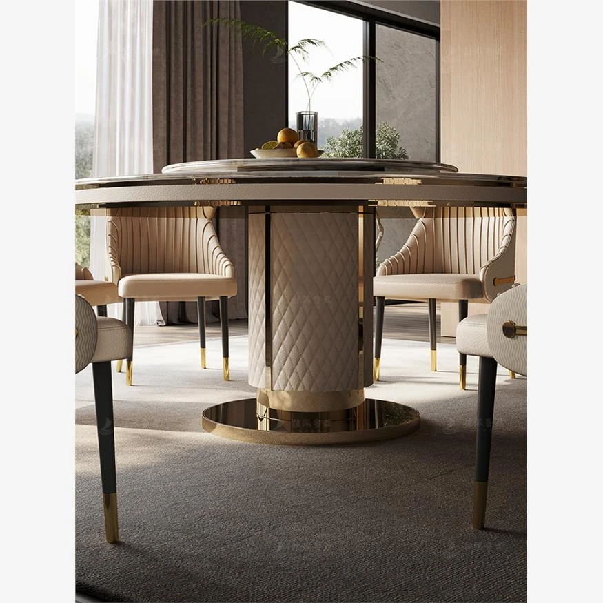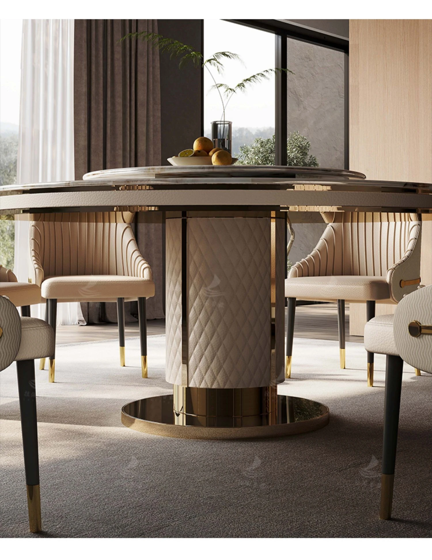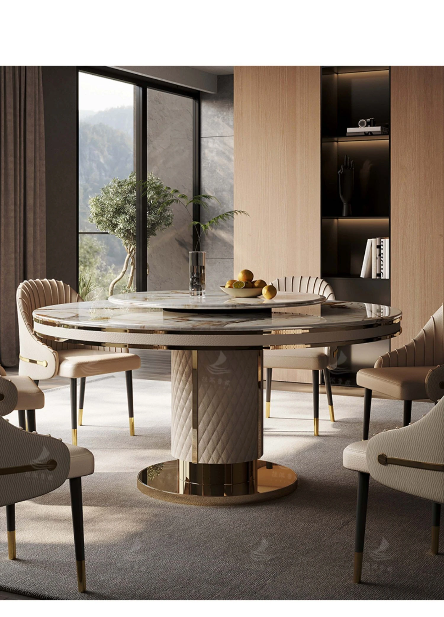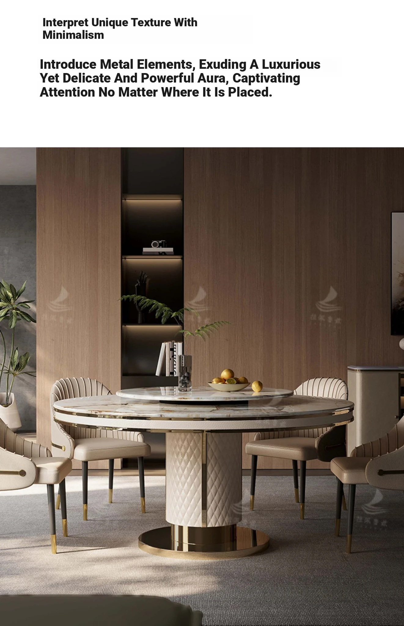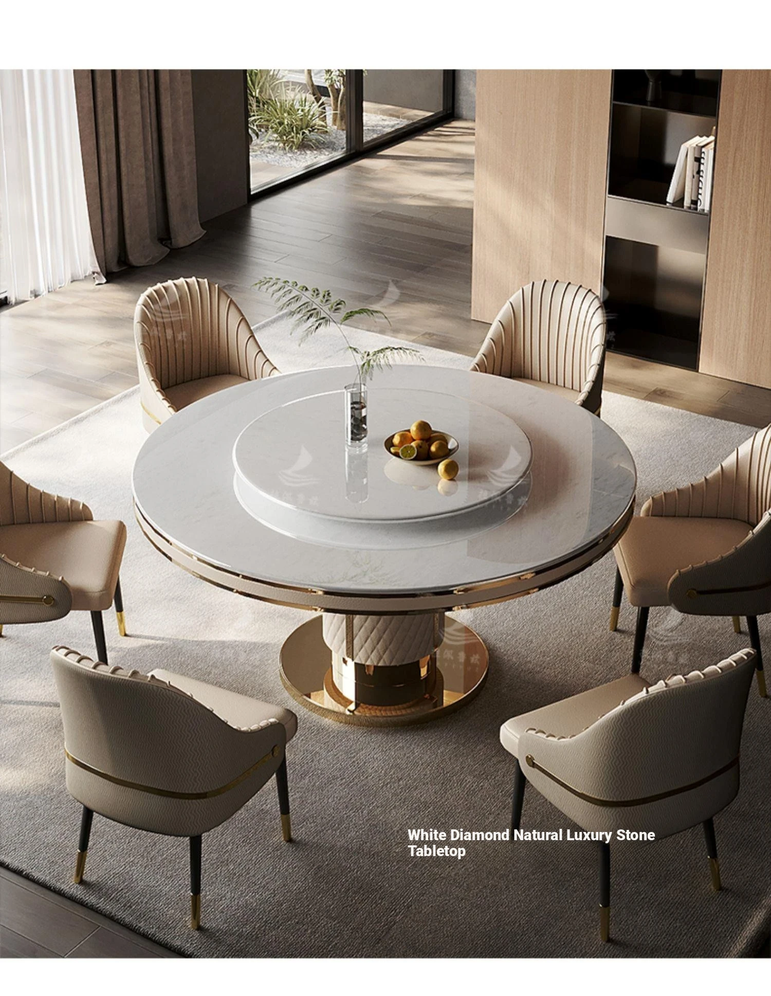 Elegant Round Dining Table for 10 - Luxury Natural Marble Design for Villas, Ideal for Home Use - Italian Minimalist Style, Perfect for Modern Living Spaces