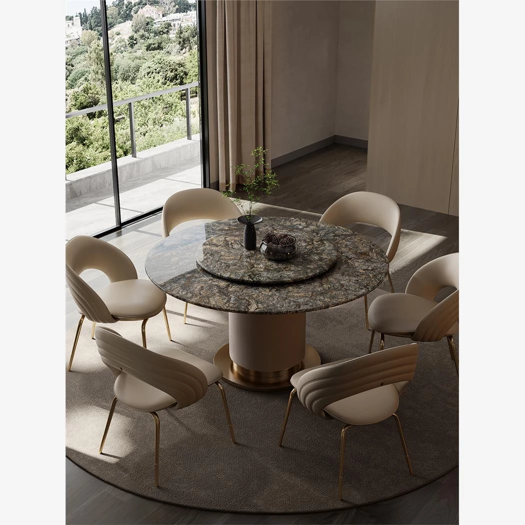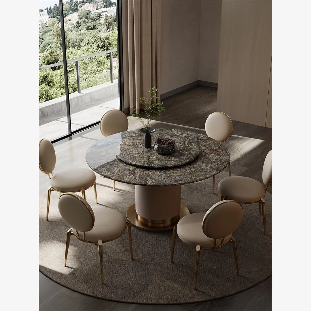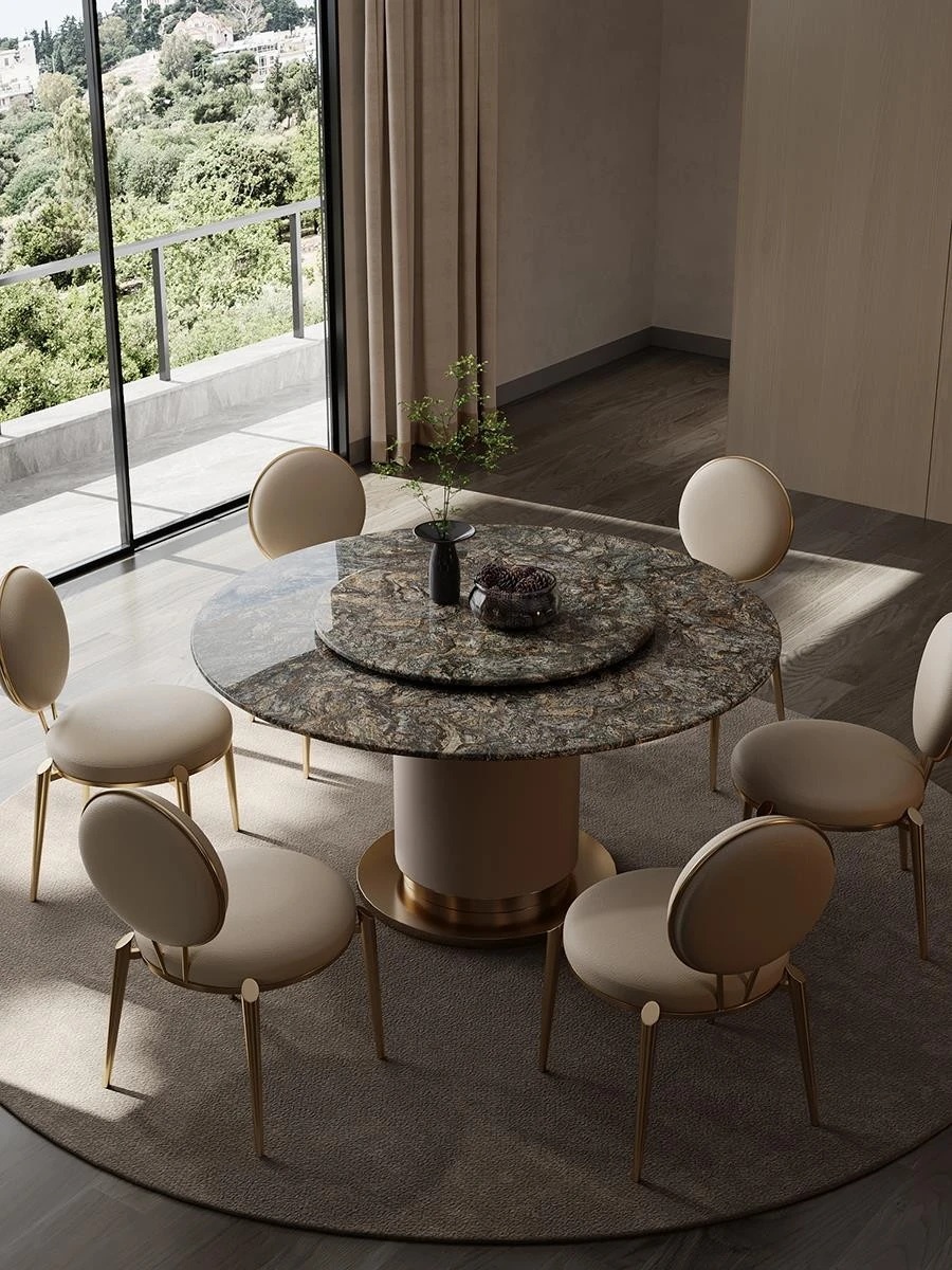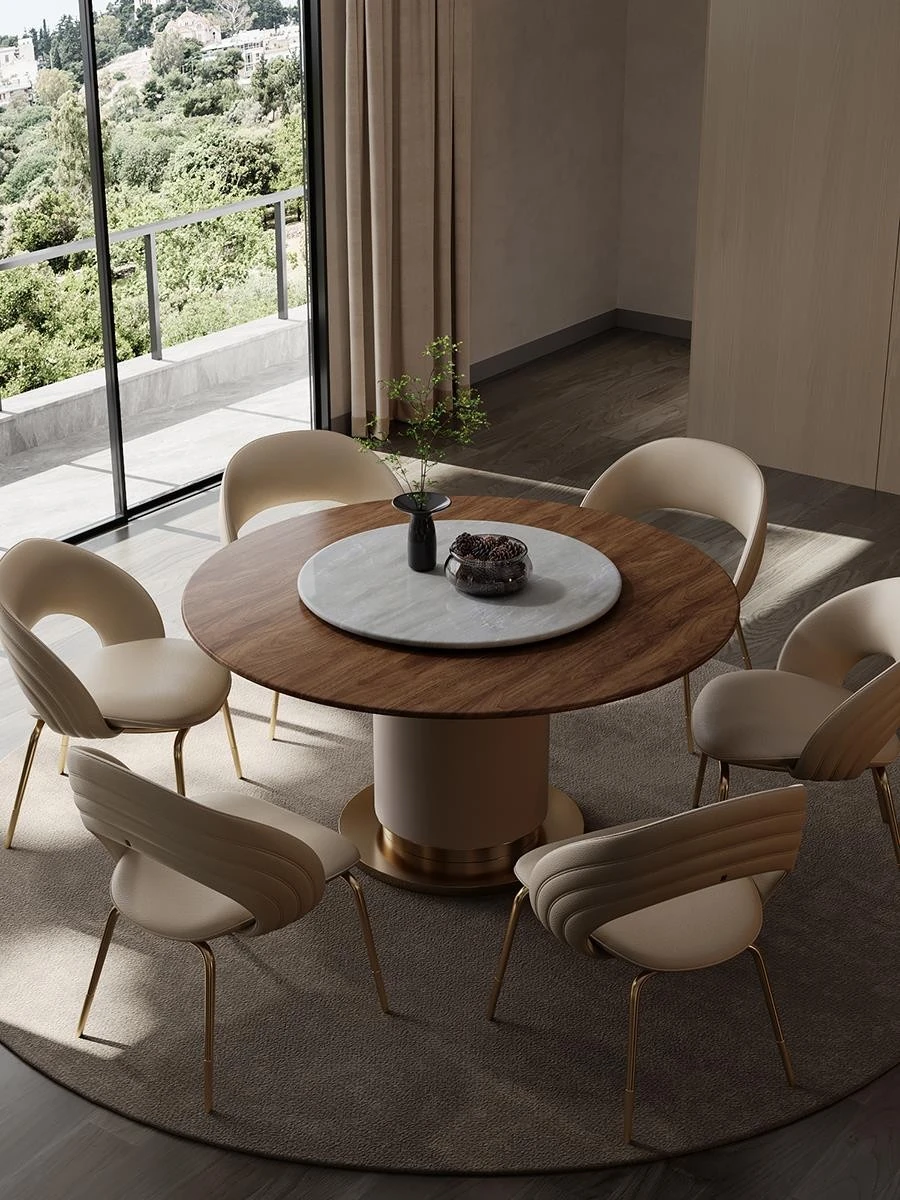 "Elegant Round Electric Dining Table for Villas - Italian Minimalist Design in Natural North American Black Walnut - Perfect for Your Dining Room"
