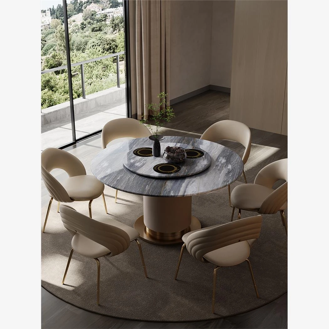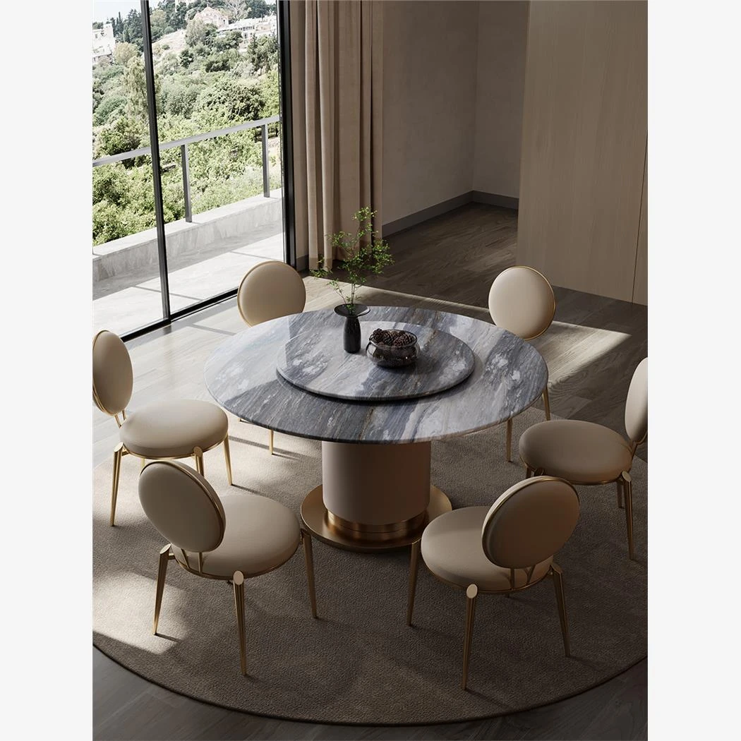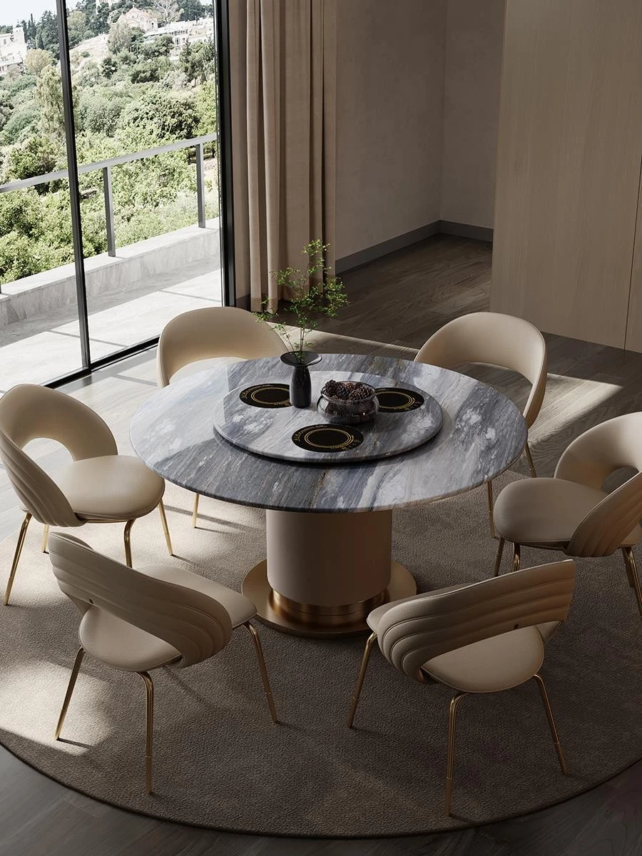 "Elegant Round Electric Dining Table for Villas - Italian Minimalist Design in Natural North American Black Walnut - Perfect for Your Dining Room"