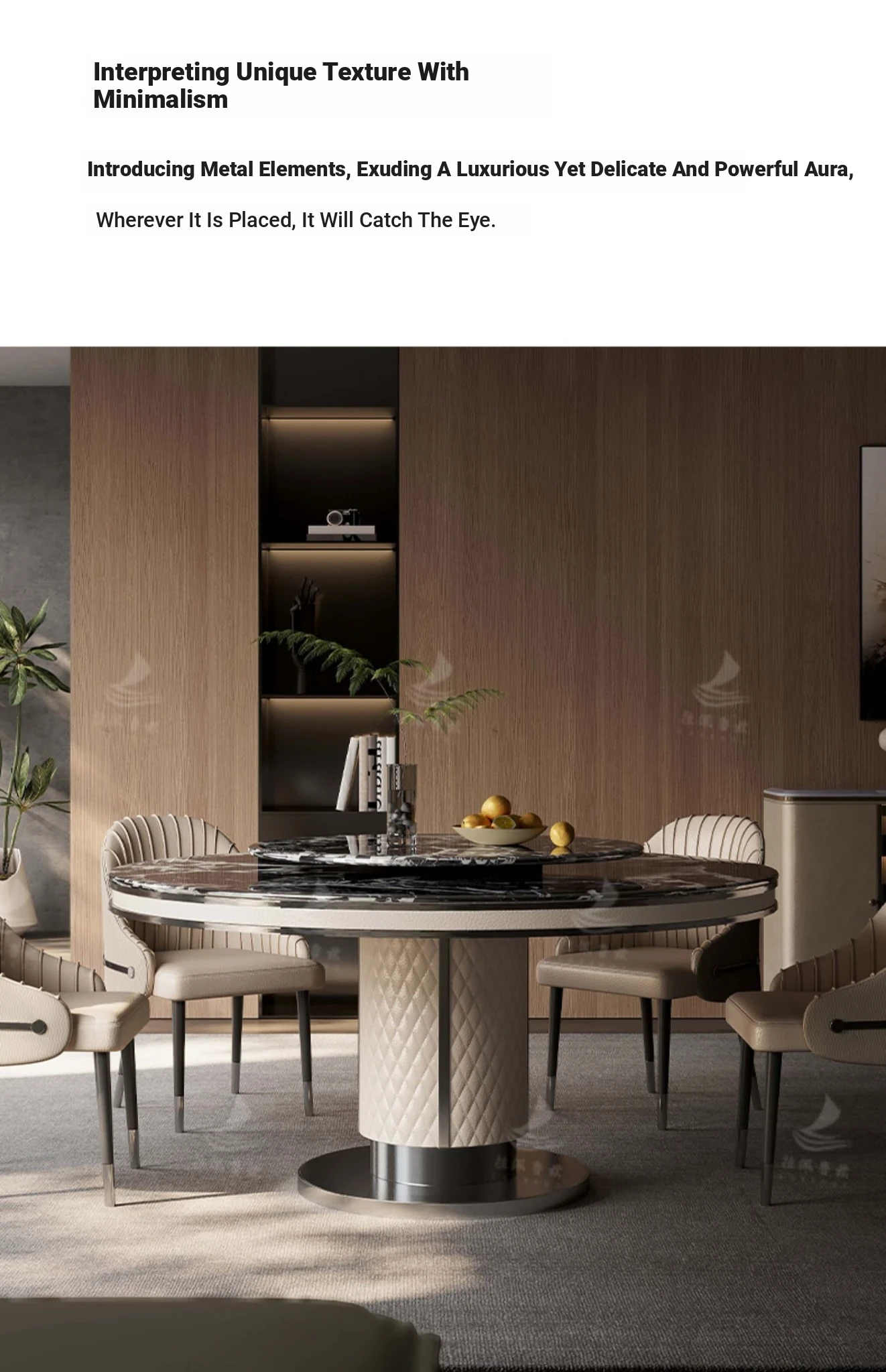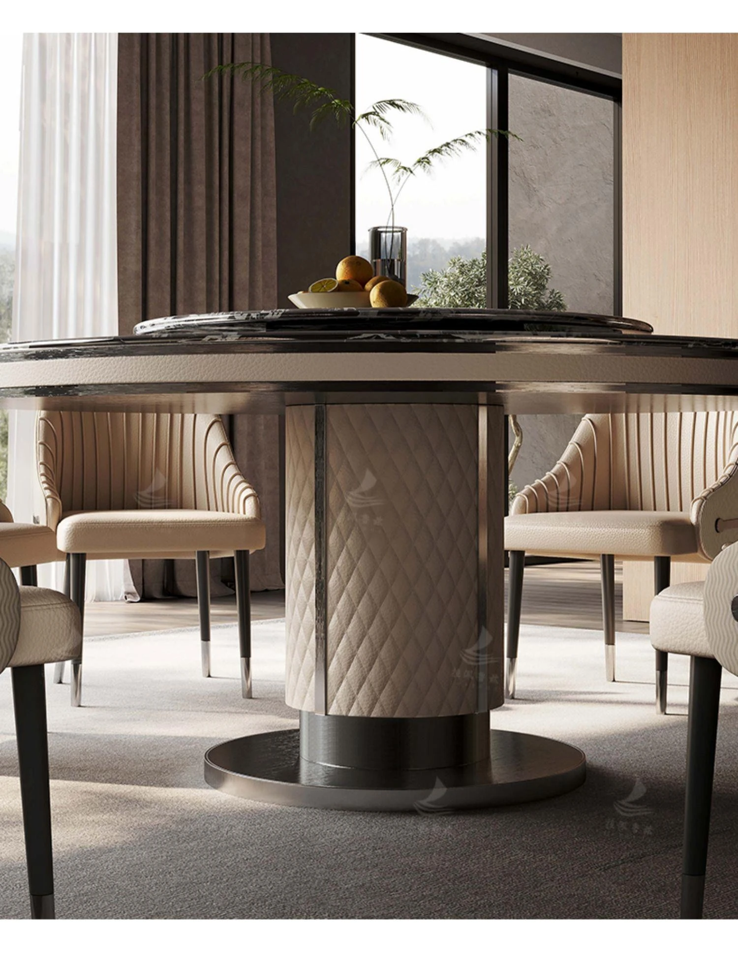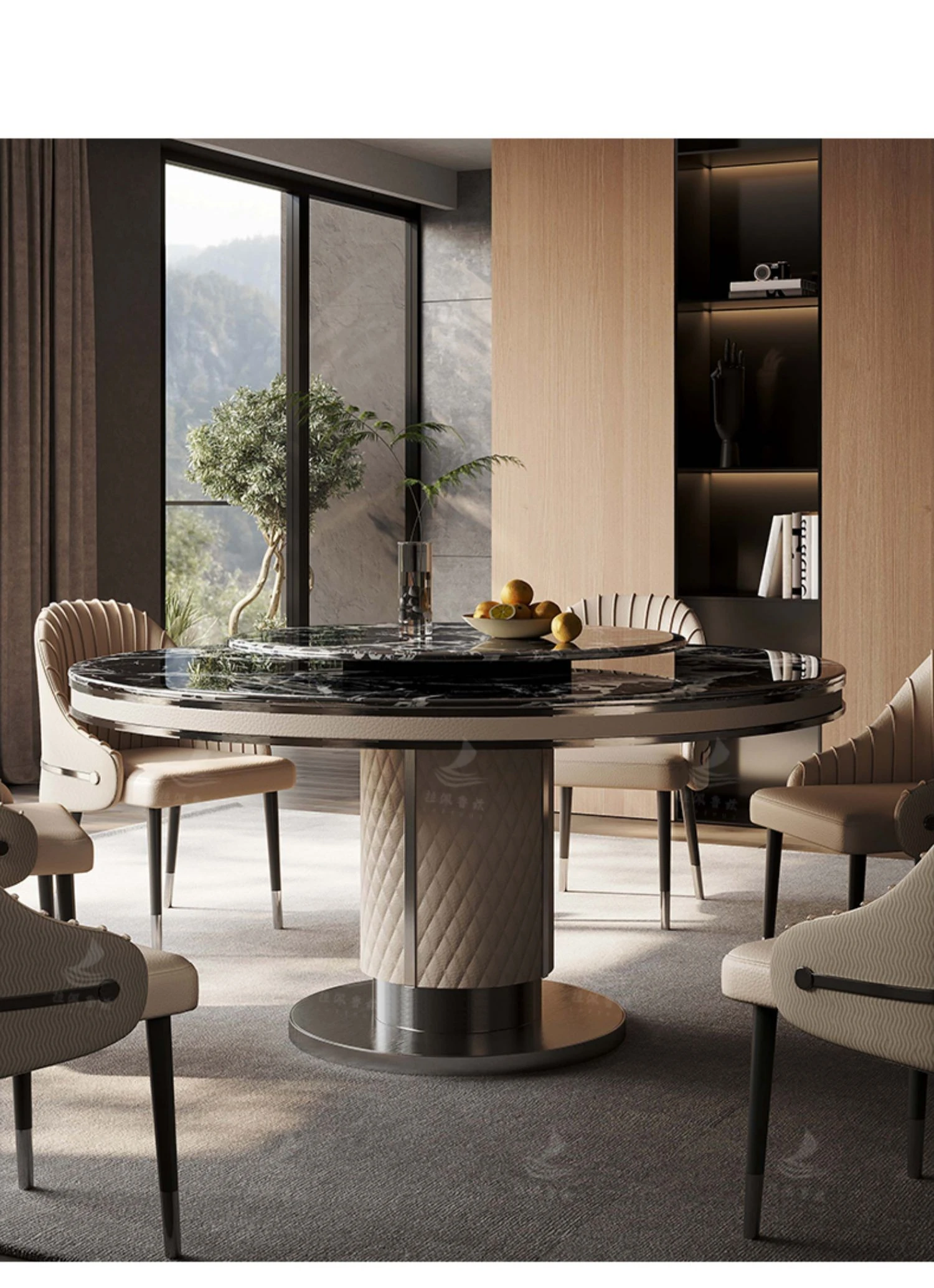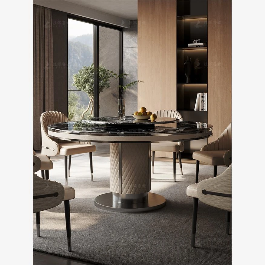 Elegant Round Marble Dining Table with Rotating Tray - Modern Luxury Home Décor for Villas, High-End Natural Stone Design