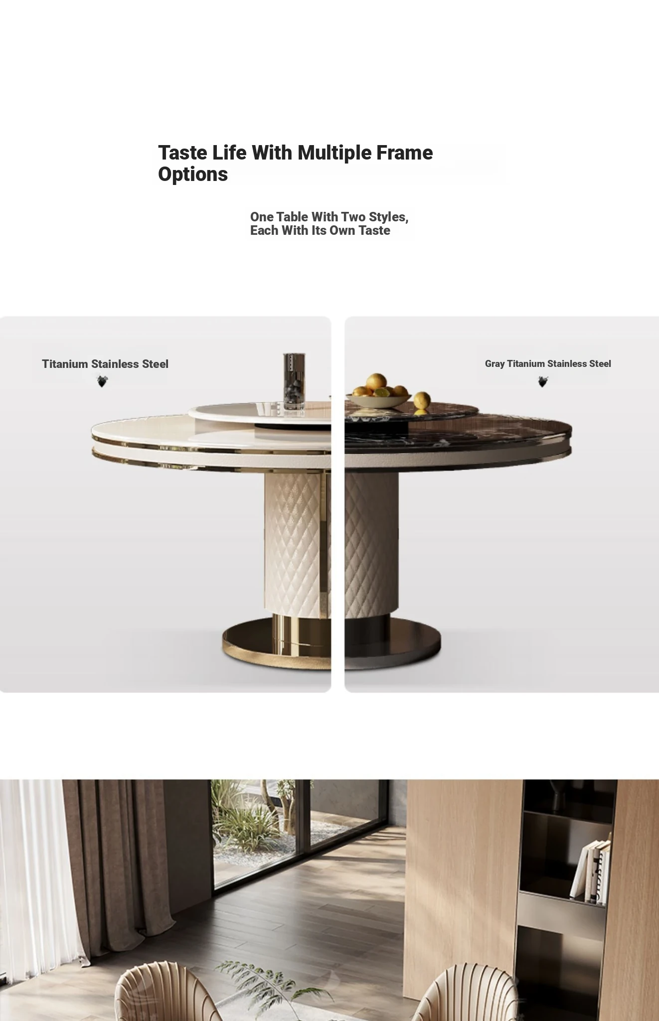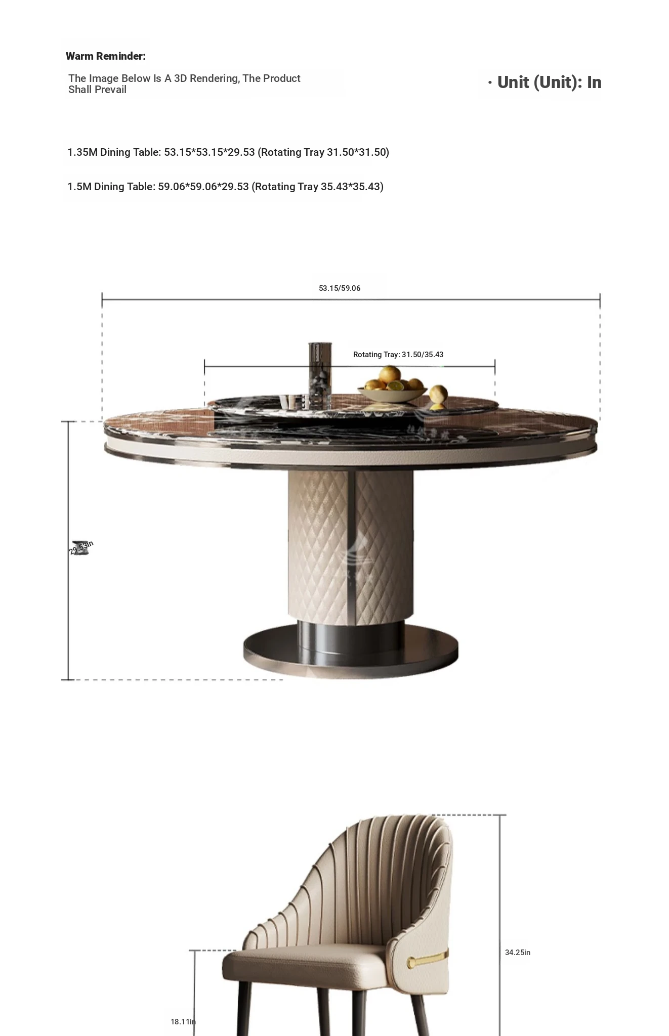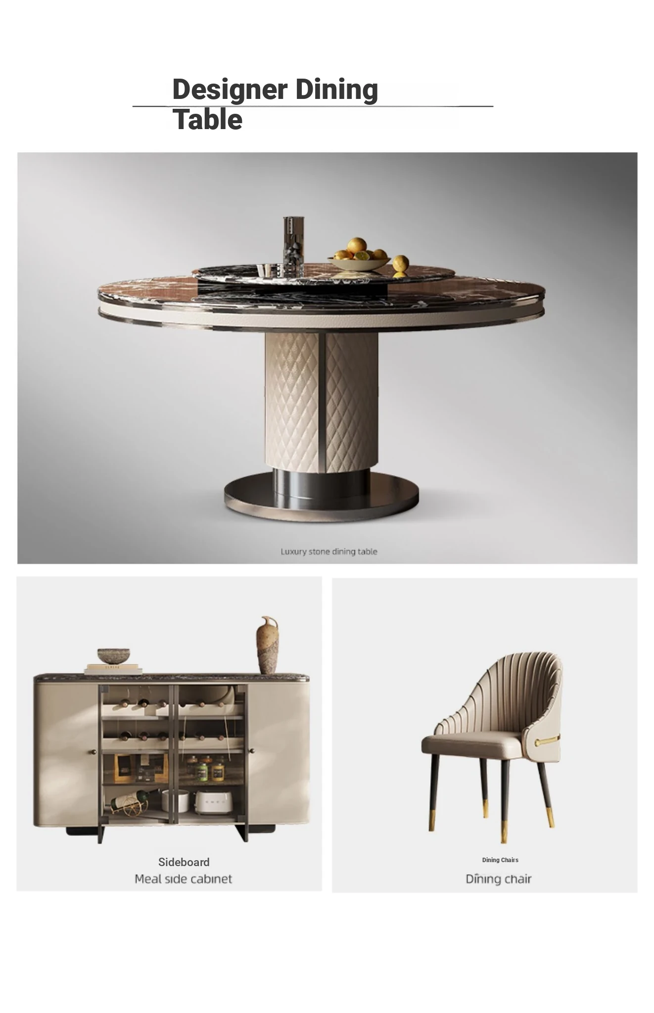 Elegant Round Marble Dining Table with Rotating Tray - Modern Luxury Home Décor for Villas, High-End Natural Stone Design