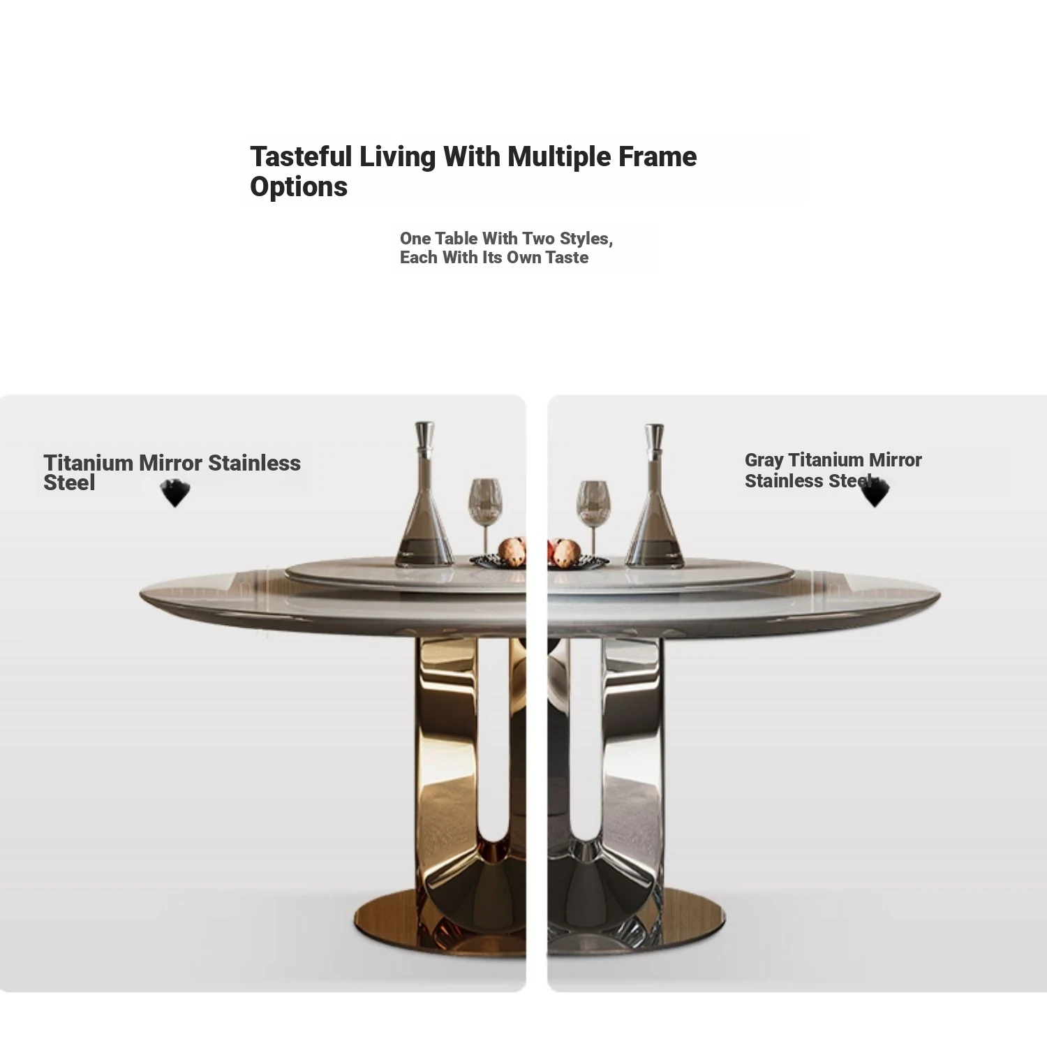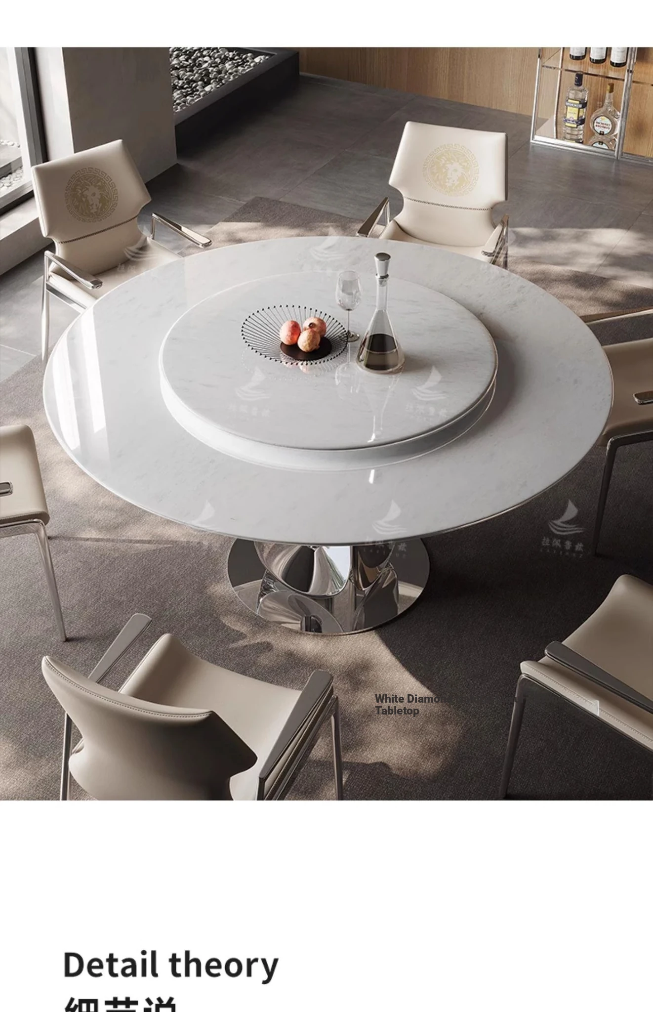 Dining table/59.06in/White Diamond/titanium silver/with 35.43in turntable