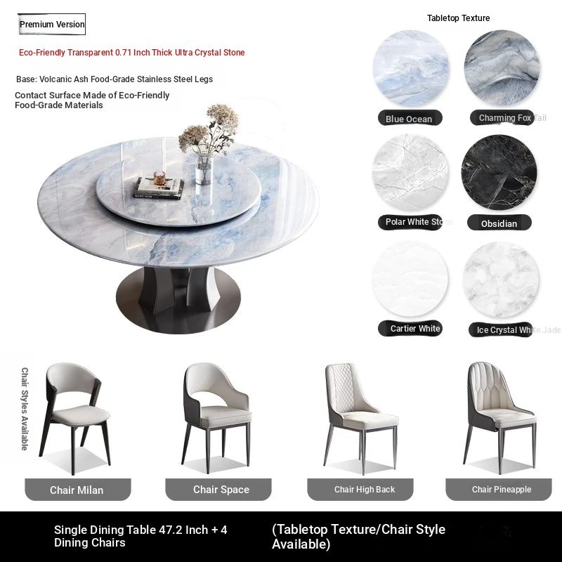 [0.71in Super crystal stone] 47.24 in Y03# round table +4 chair stainless steel base