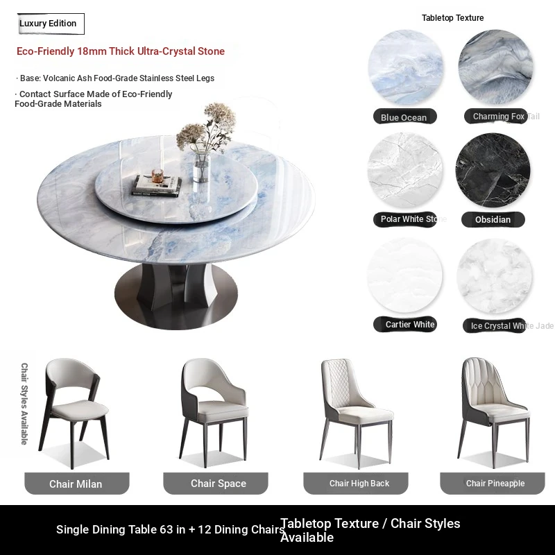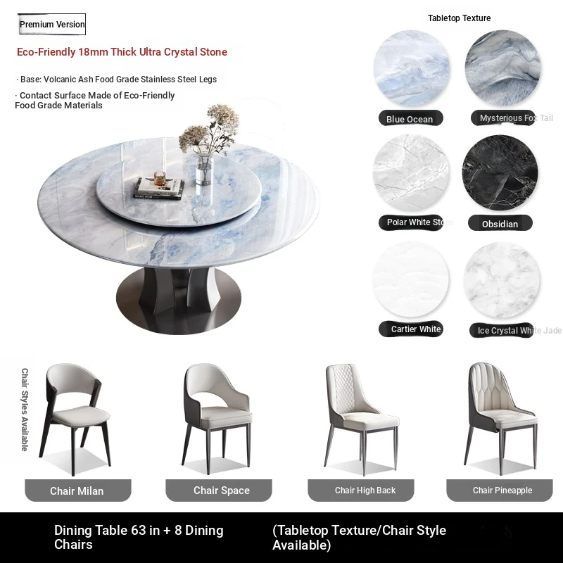 [0.71in Super crystal stone] 62.99 in Y03# round table +8 chair stainless steel base