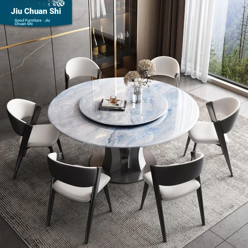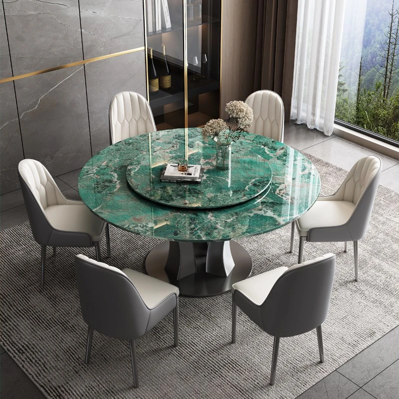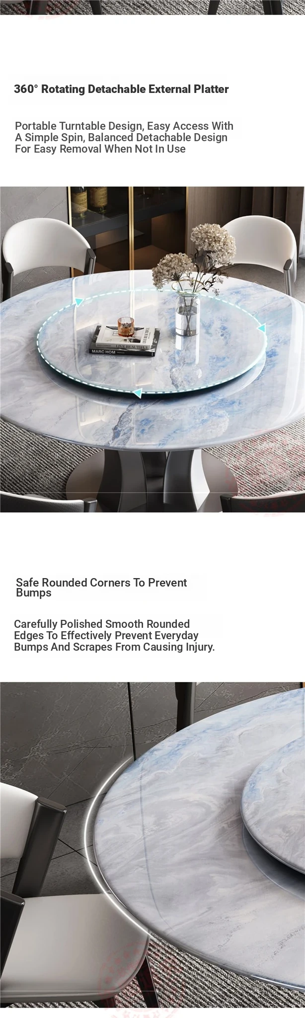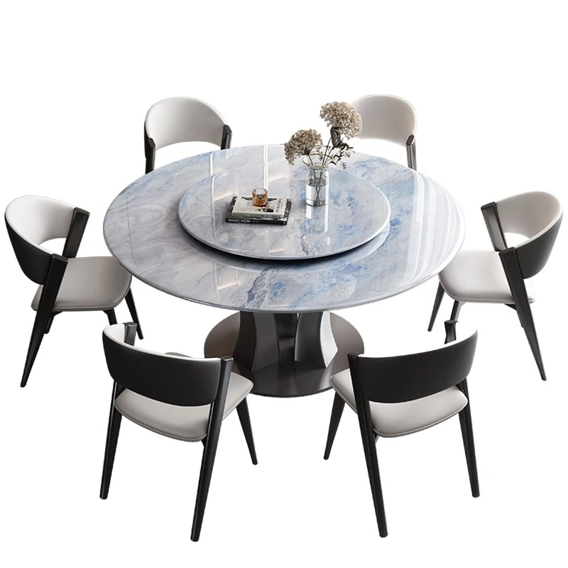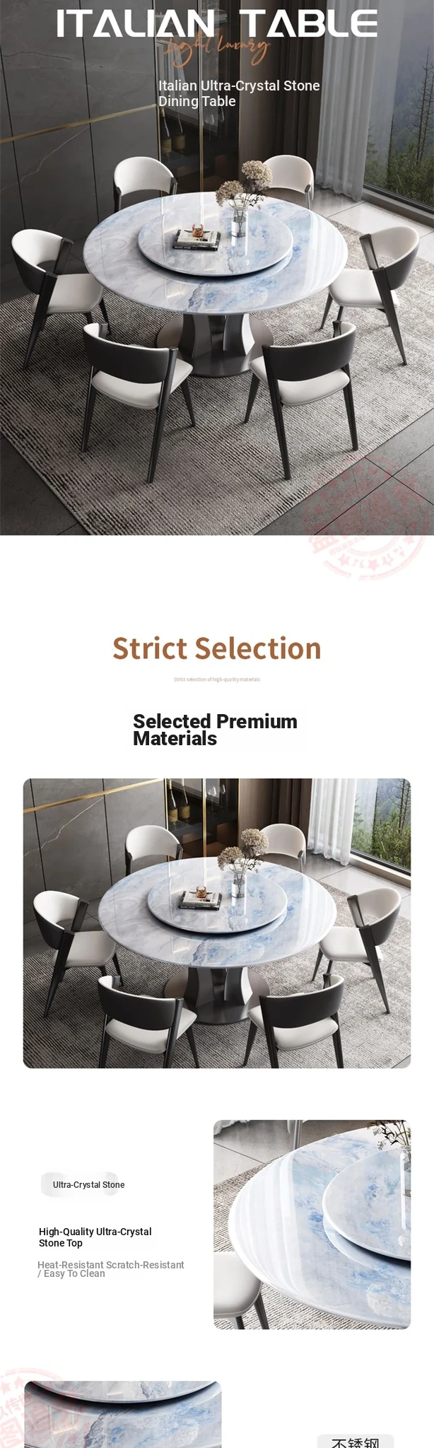 [0.71in Super crystal stone] 47.24 in Y03# round table +6 chair stainless steel base