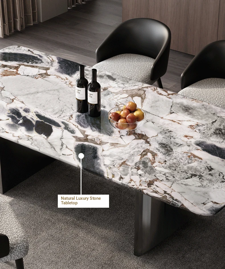 94.49in*39.37in dining table +8 chairs/natural luxury stone elephant White([False one to ten]])