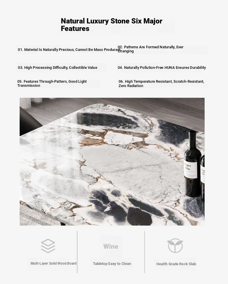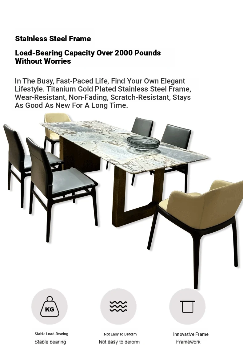 94.49in*39.37in dining table +6 chairs/natural luxury stone elephant White([False one to ten]])