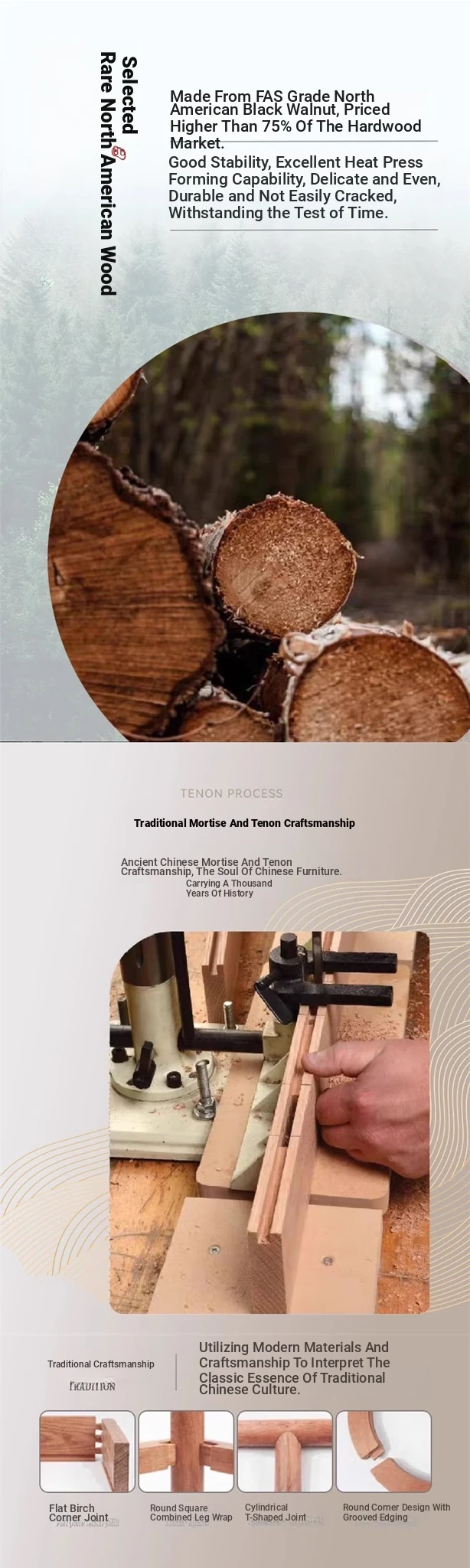 Round few/North American black walnut