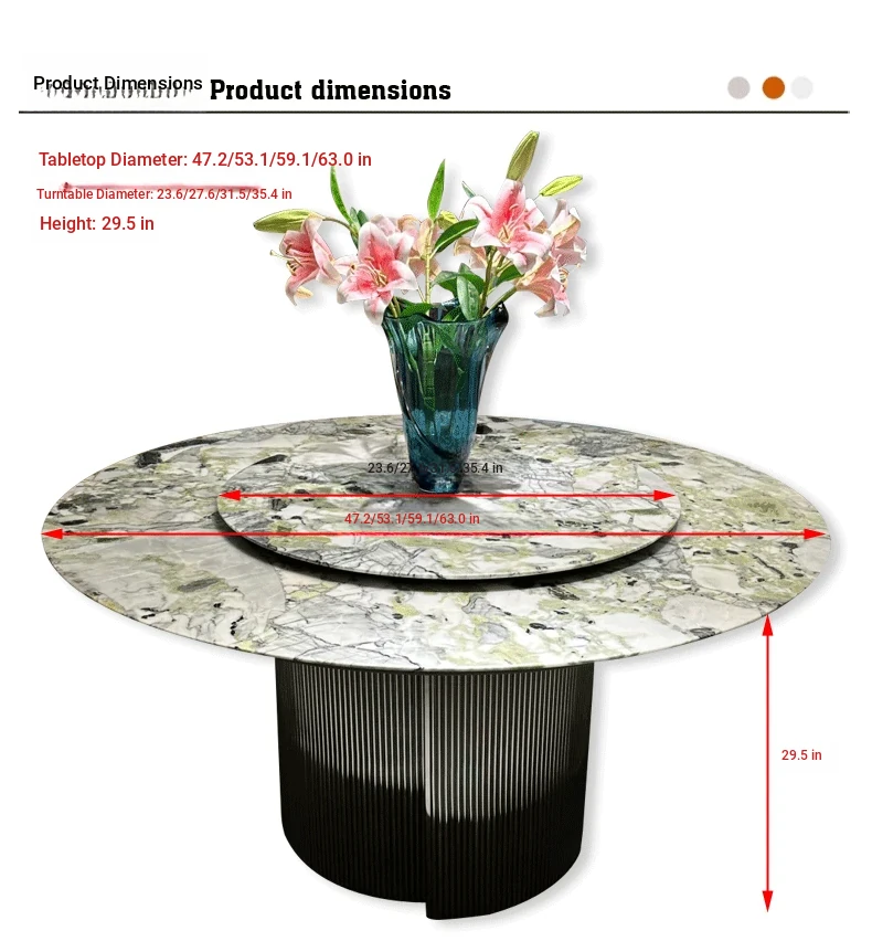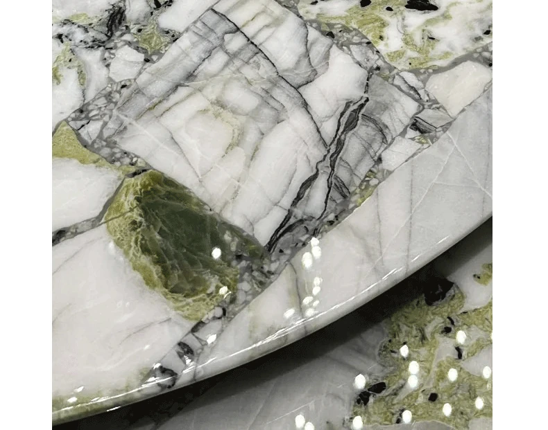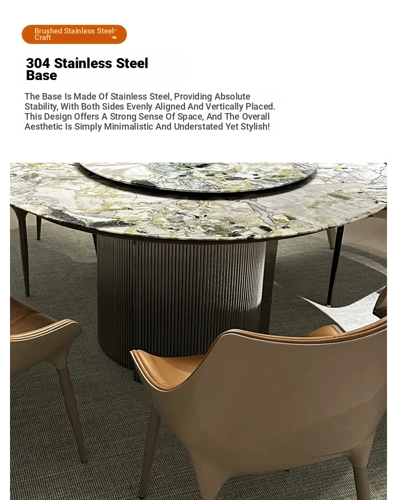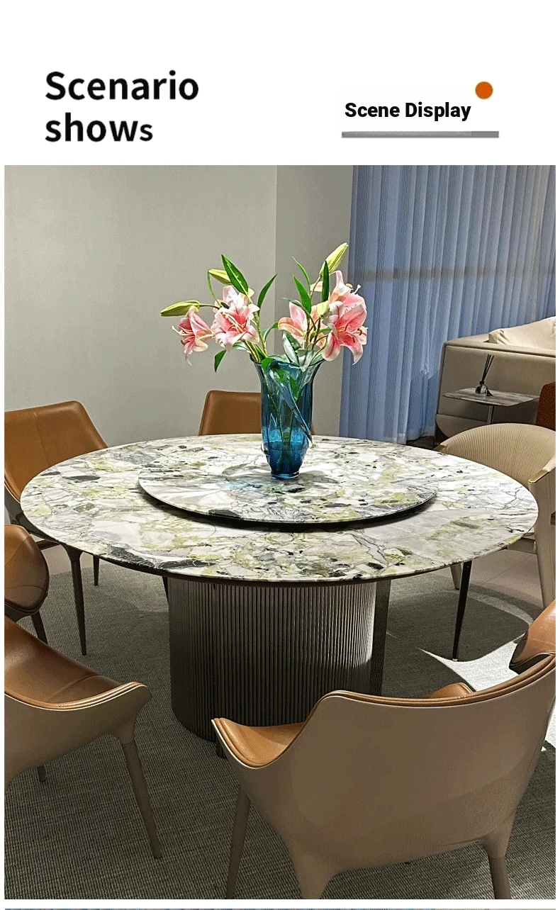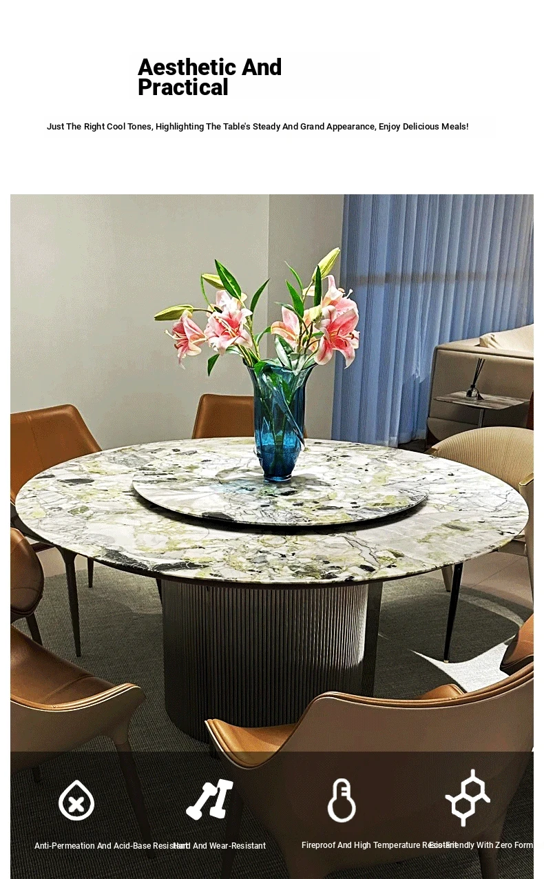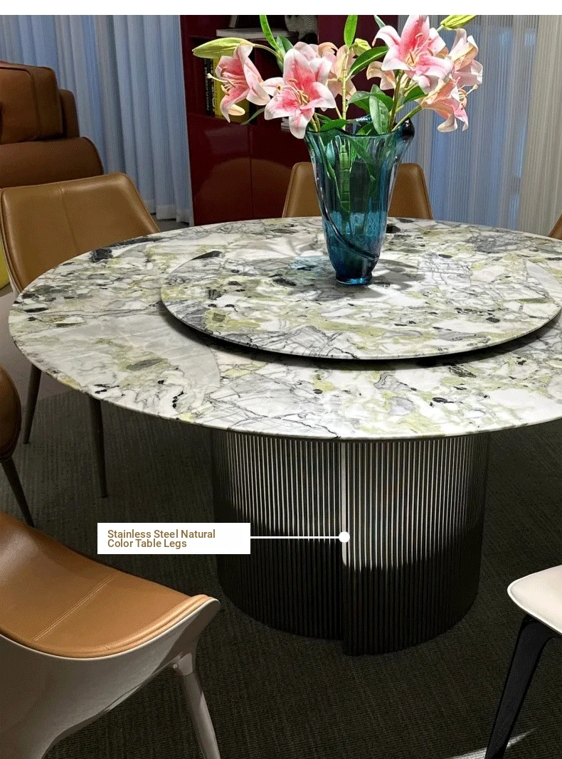 Imported Cold Jade Luxury Stone Dining Table - Elegant Italian High-End Round Marble Table for Villas with Rotating Tray - Perfect for Upscale Dining Experiences