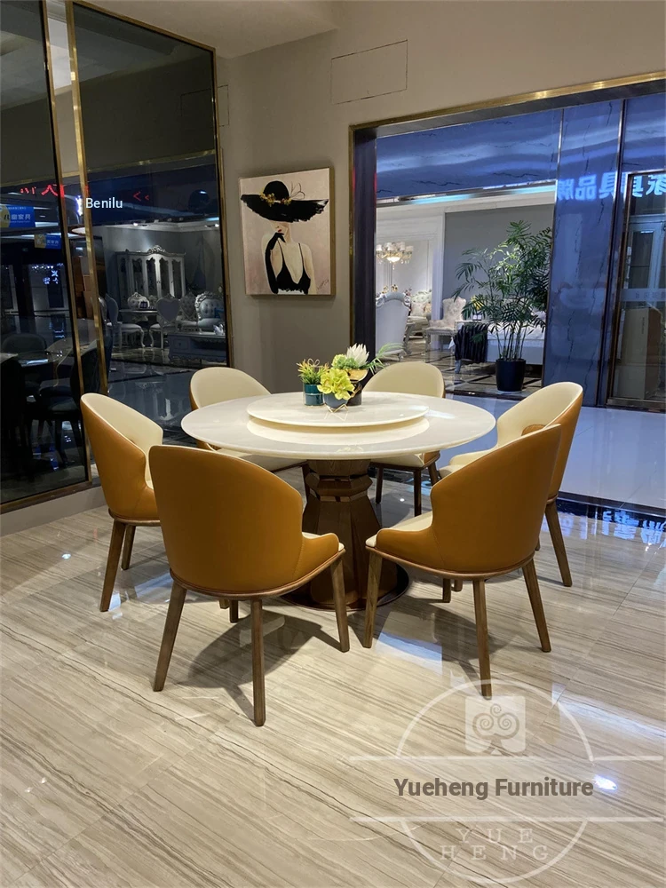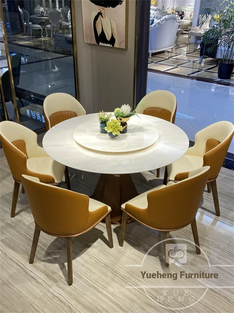 Royal ice jade ice Jade luxury stone table six chairs 51.18 ins 75 turns(Third-generation upgrade)