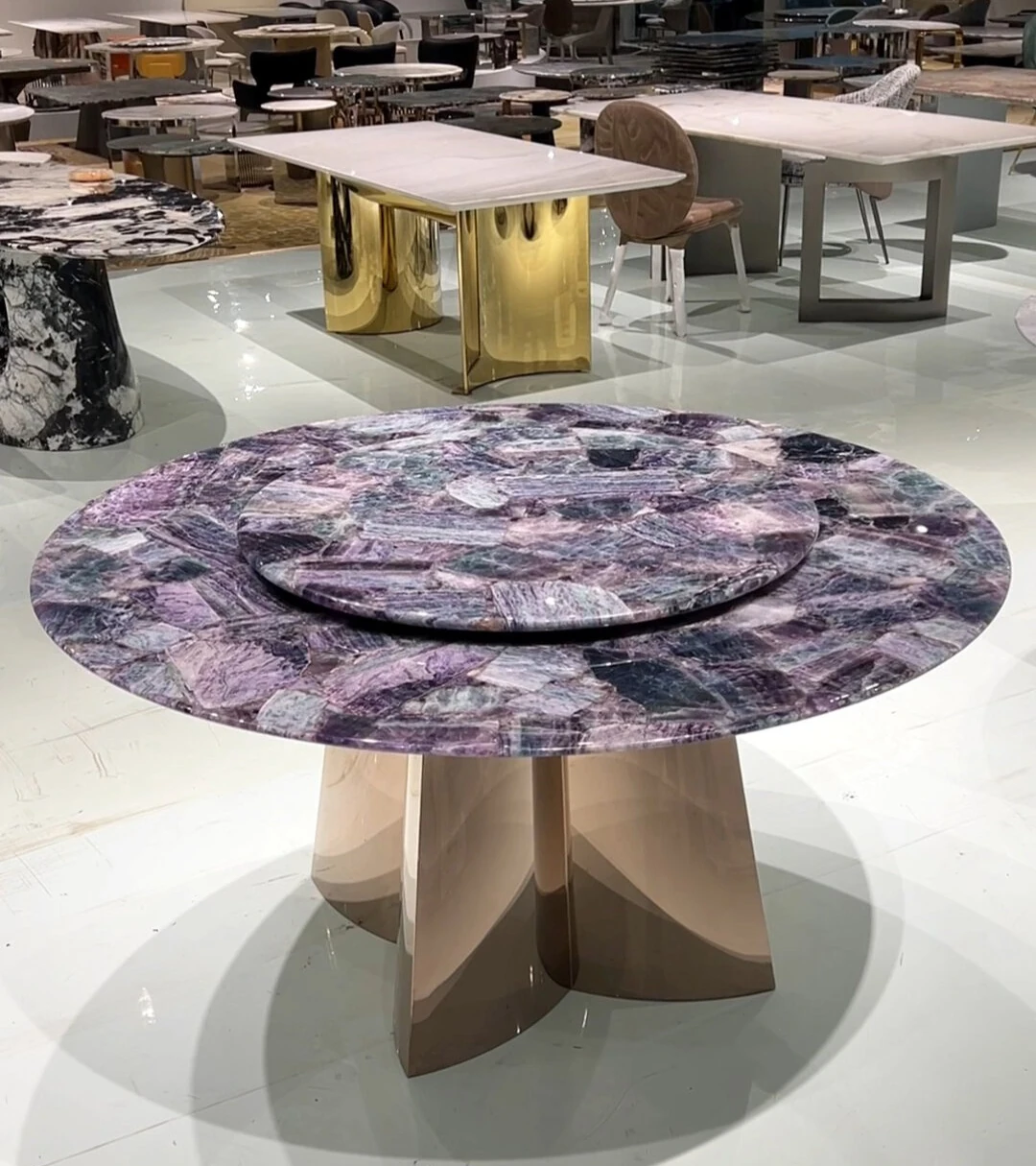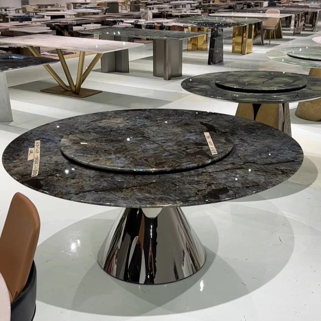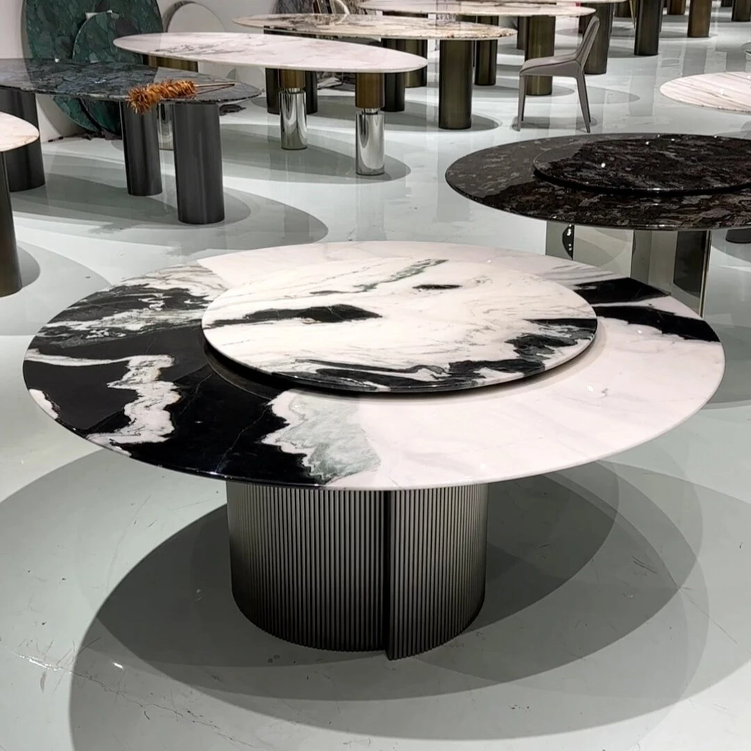 Imported Luxury Marble Dining Table and Chair Set - Elegant Round Natural Marble Table for Villas and Modern Homes, Perfect for High-End Dining Experience.
