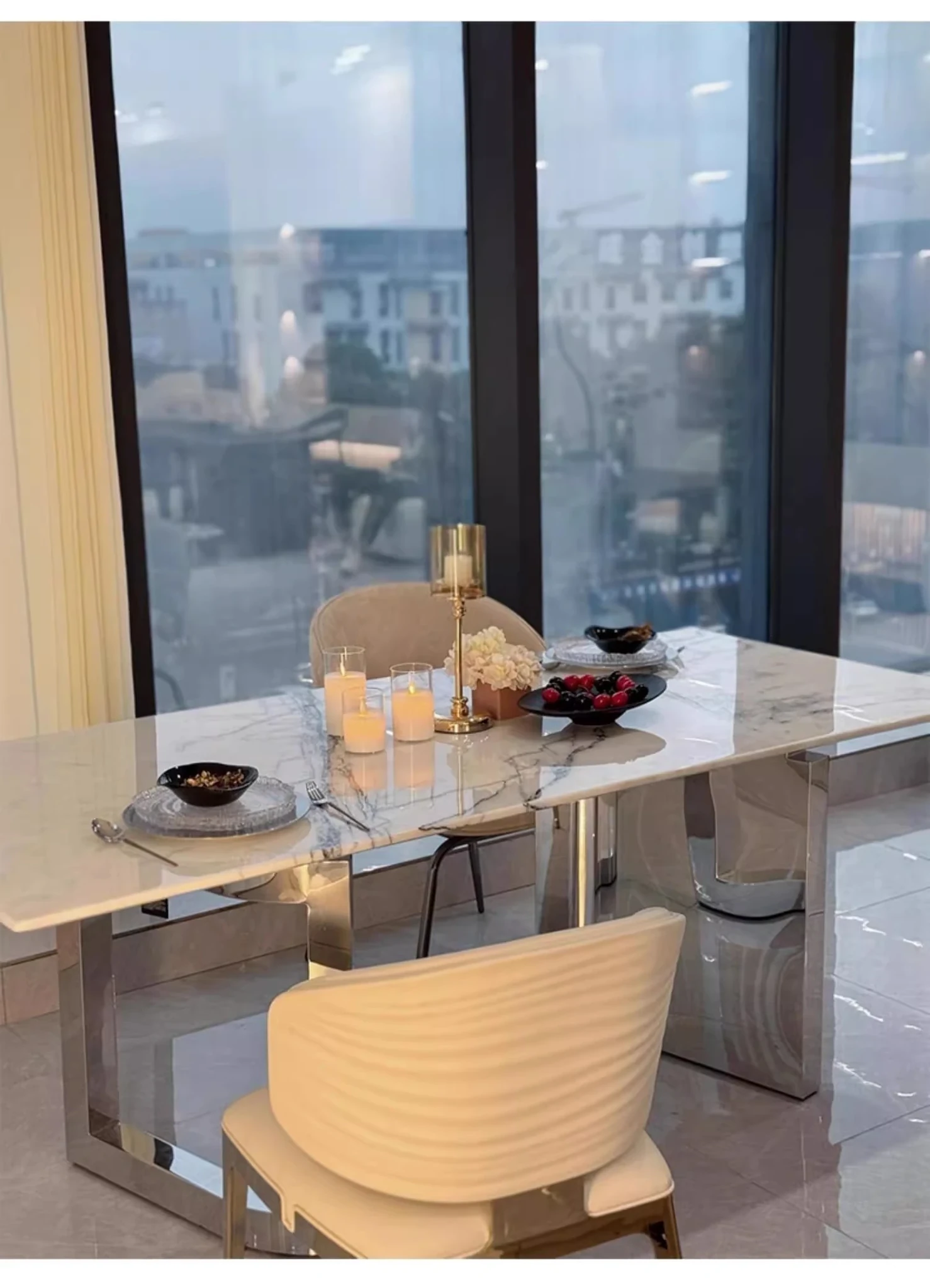 94.49in*39.37in dining table +8 chairs/Import luxury stone fragrant snow plum([False one to ten]])
