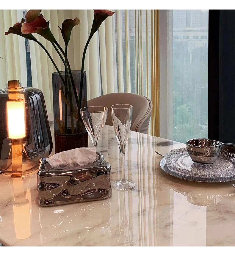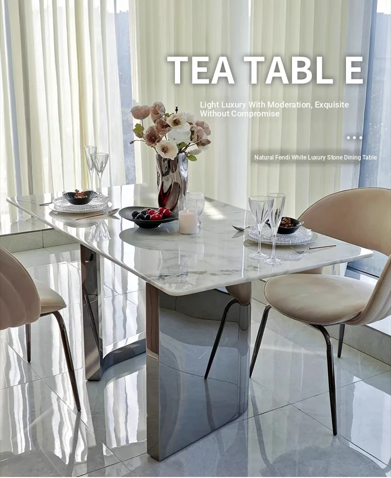 86.61in*39.37in dining table/Import luxury stone Fendi White