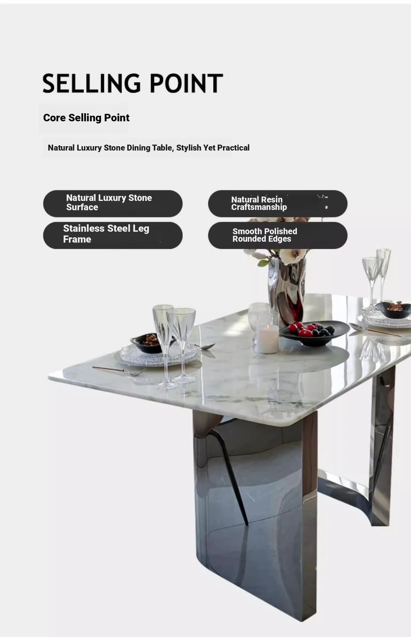 94.49in*39.37in dining table +6 chairs/Import luxury stone Fendi White