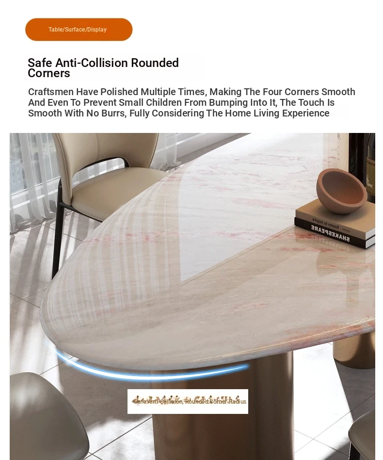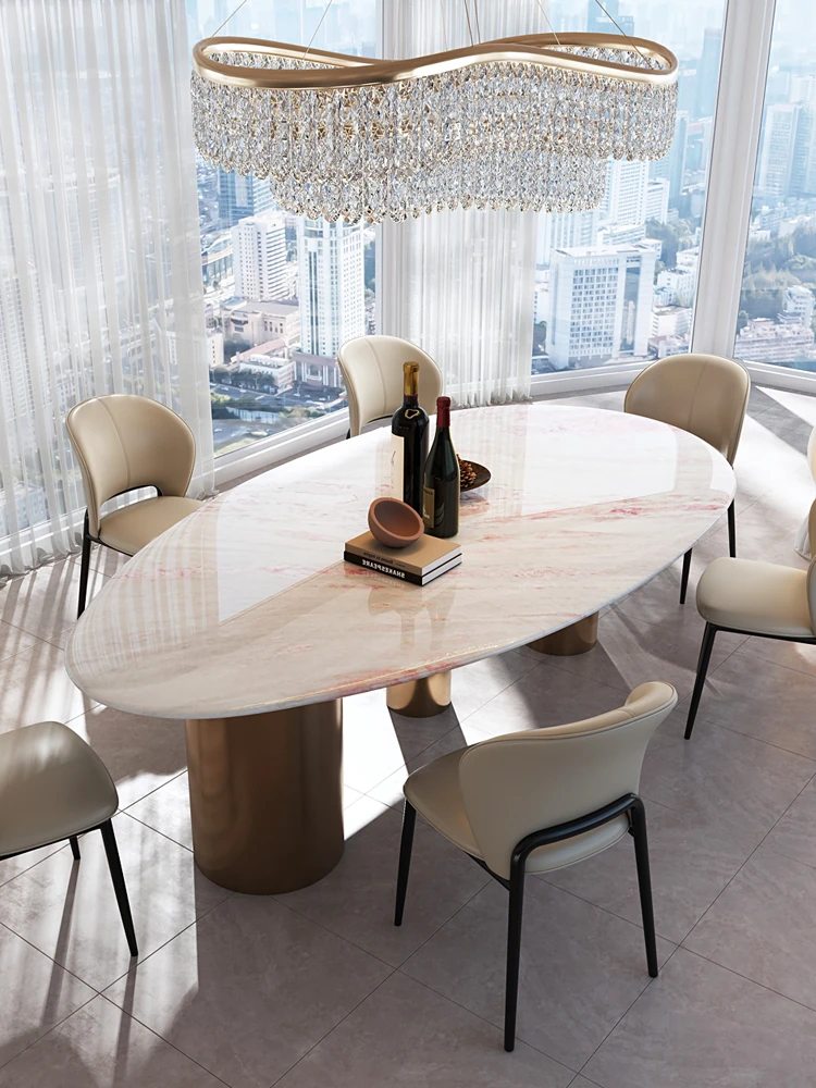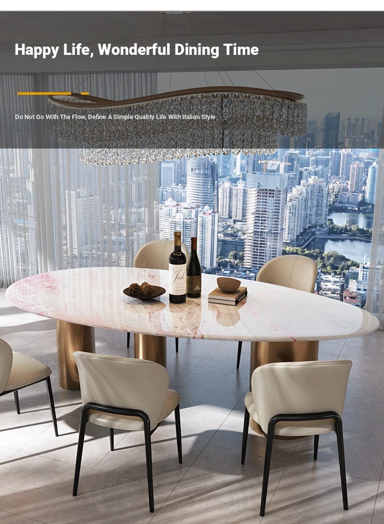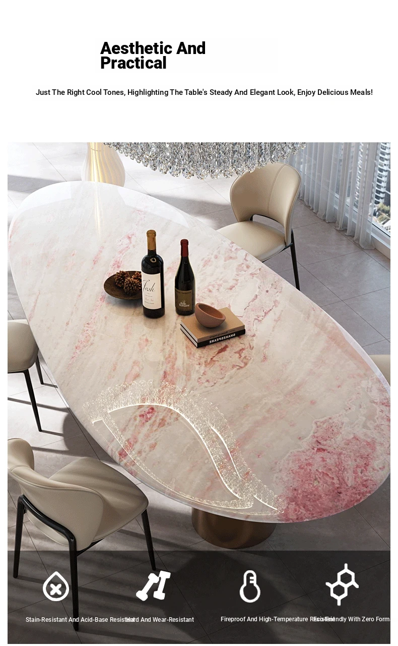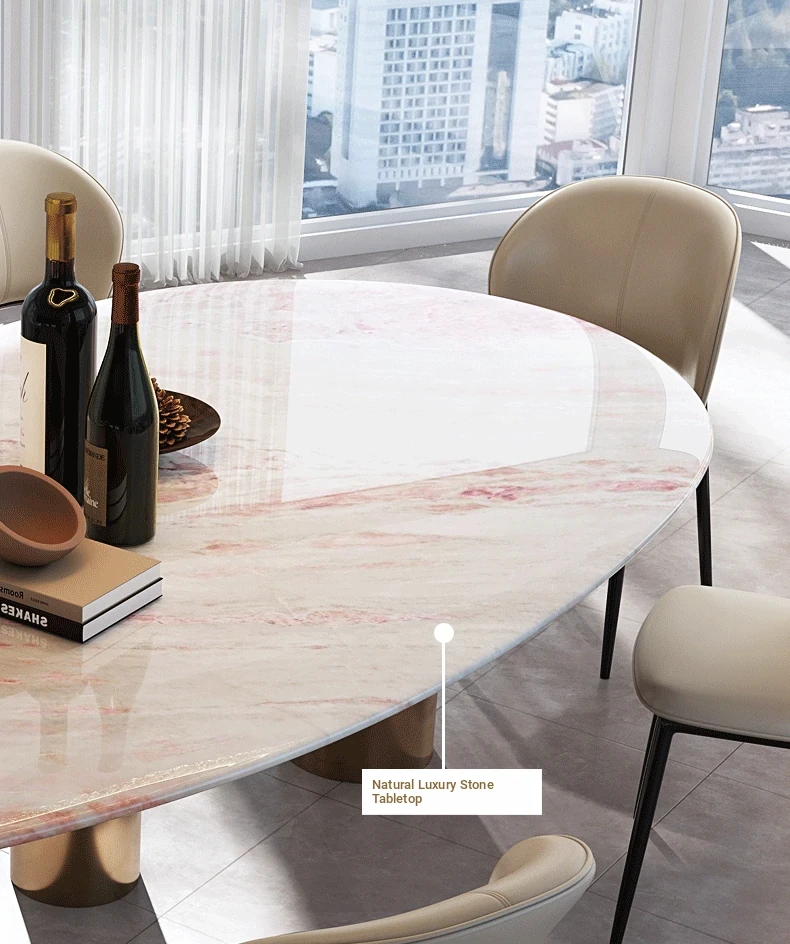 86.61in*43.31in dining table +8 chairs/natural luxury Stone Rose Rainbow