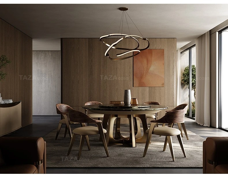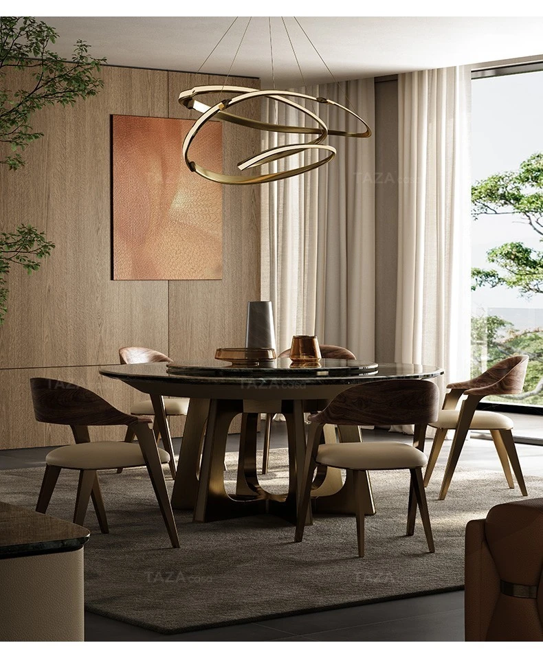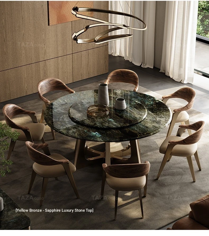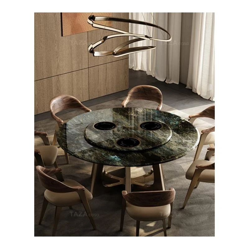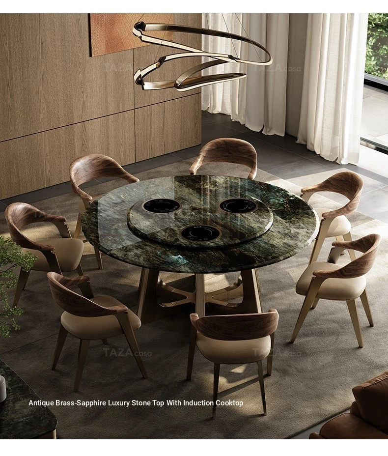 Italian Luxury Dining Table Set - Complete Villa Collection with Electric Rotating Induction Cooktop for Dining Room
