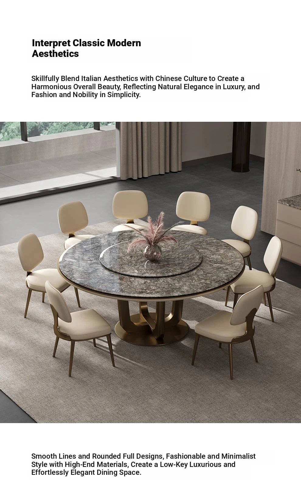 Italian Luxury Round Marble Dining Table for Villas - Modern Minimalist Design by Expert Designers, Perfect for Sophisticated Living Spaces.