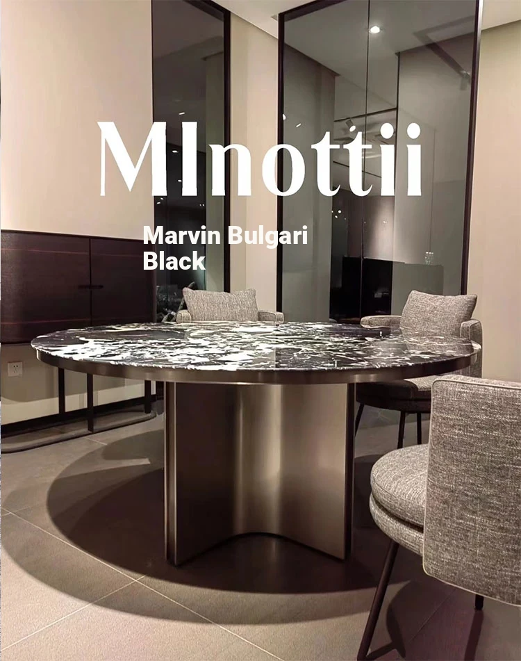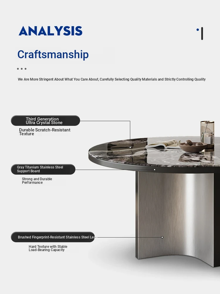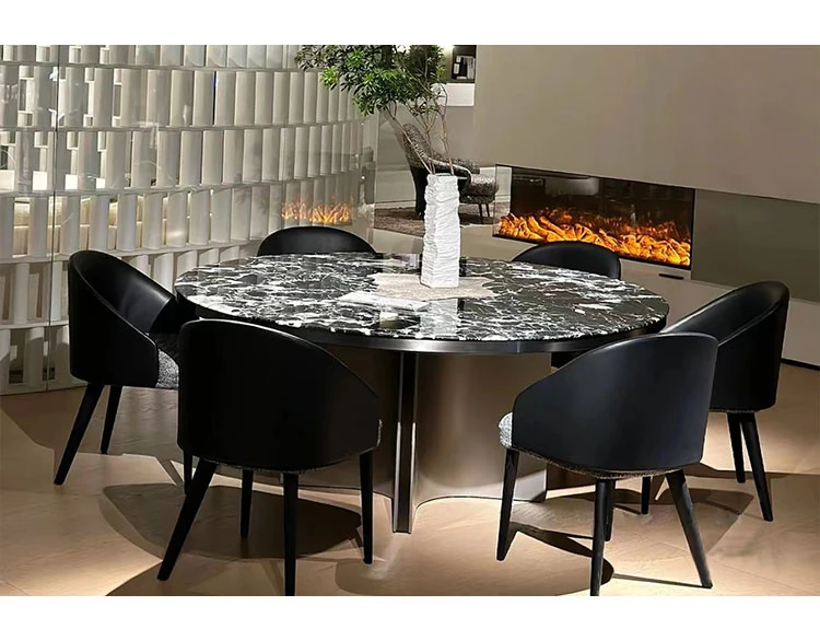 Italian Minimalist Round Marble Dining Table and Chair Set - Premium Stainless Steel, Natural Luxury Super Crystal Stone Dining Table