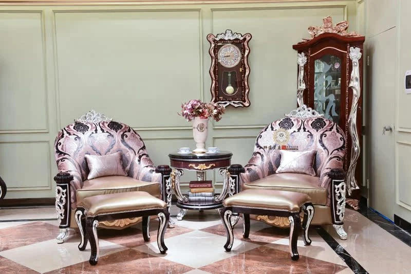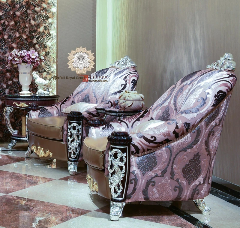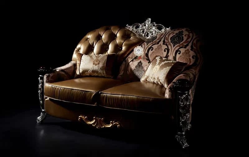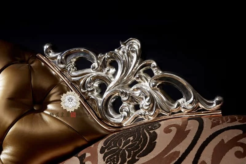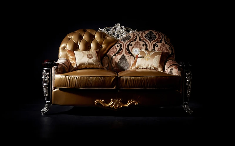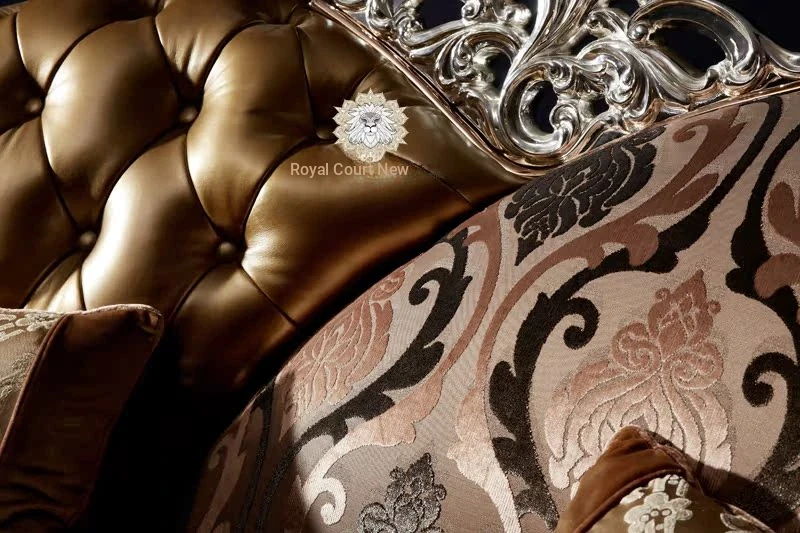Luxurious European Style Leather and Fabric Sofa - Imported Solid Wood with Rose Gold Pure Copper Accents - Authentic Living Room Furniture