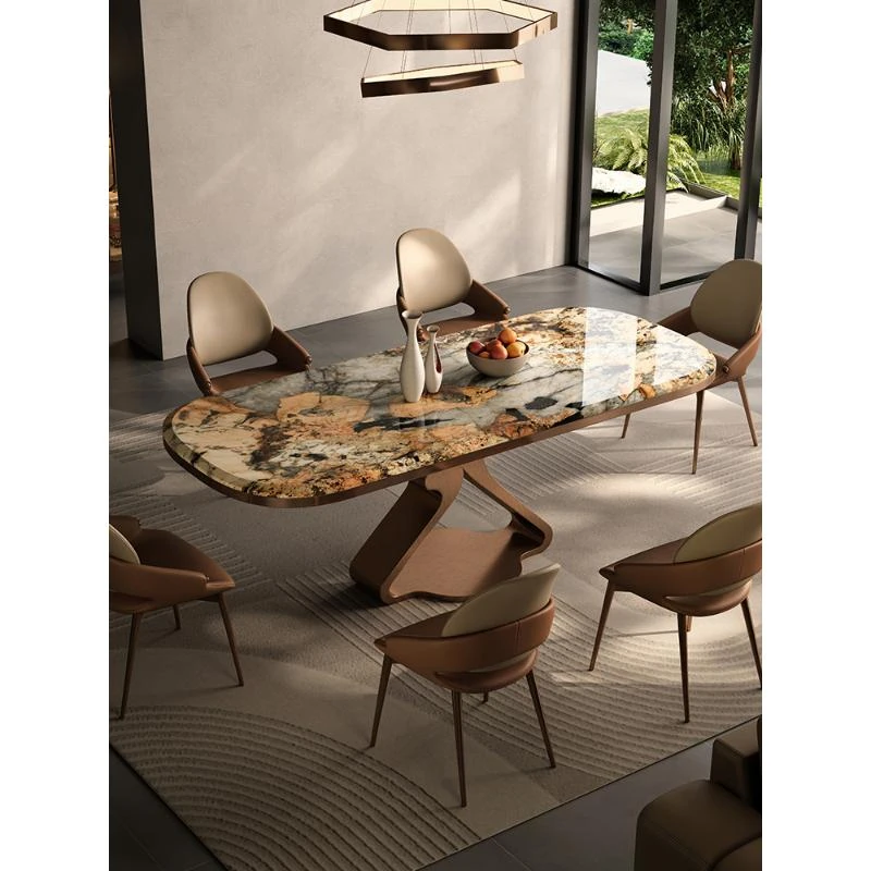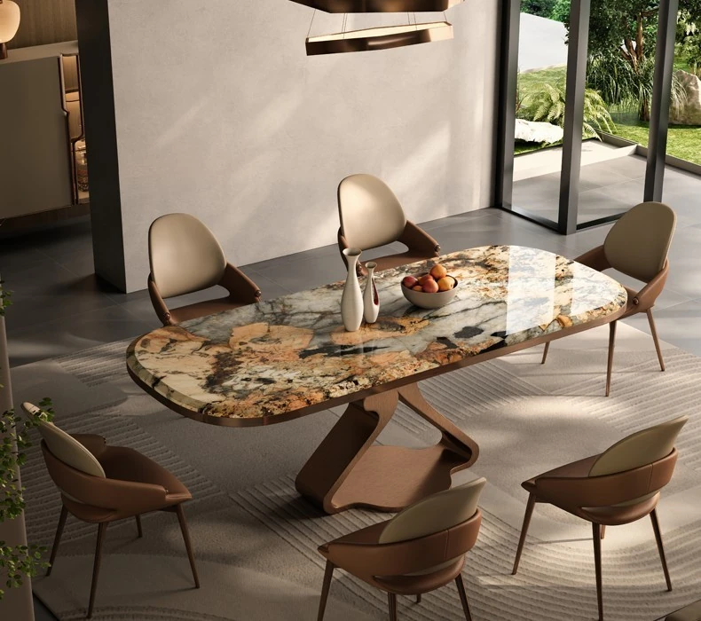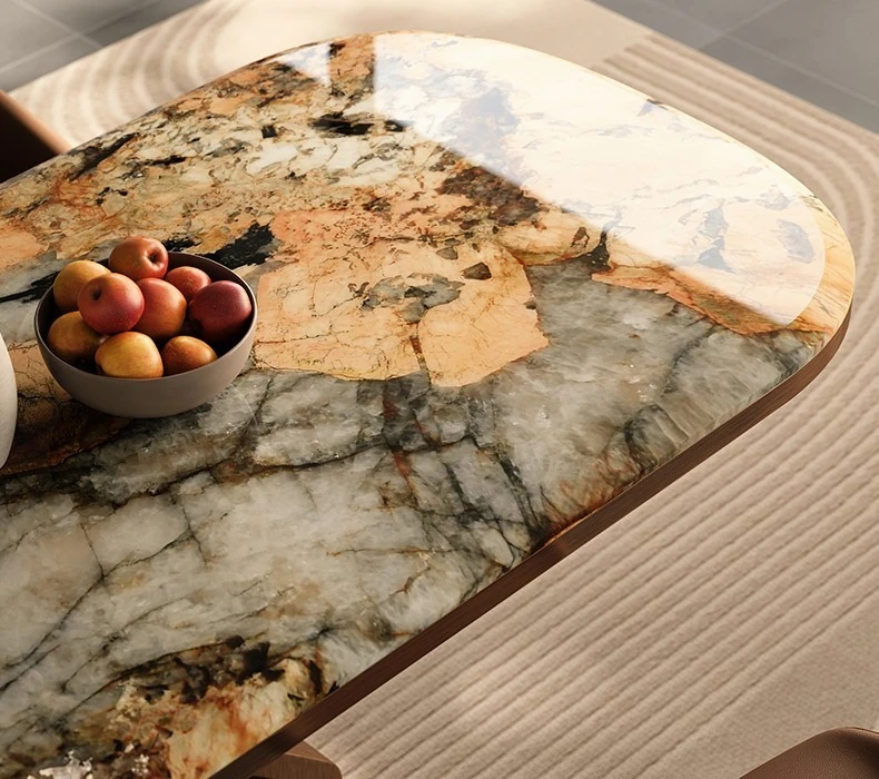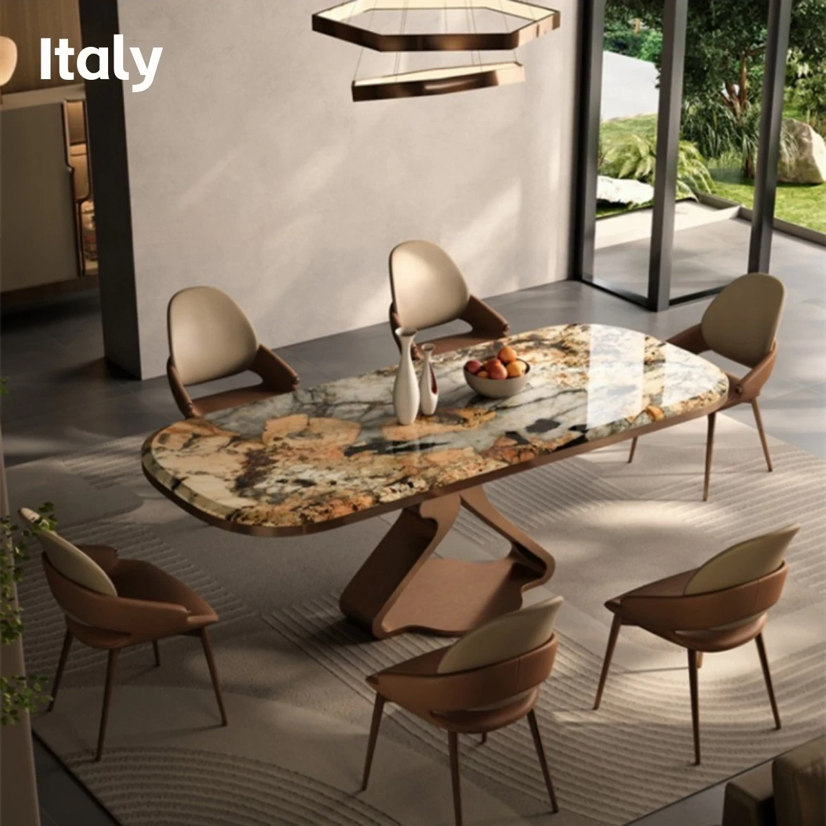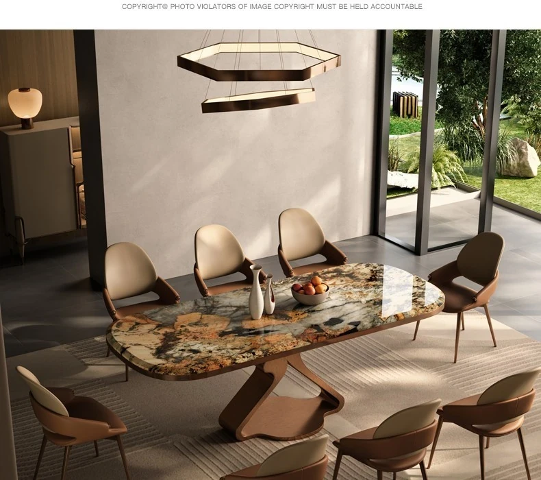 Luxurious Modern Rectangular Dining Table - Multifunctional Pure Natural Marble Table for Villas and Homes, Perfect for Elegant Dining Experiences