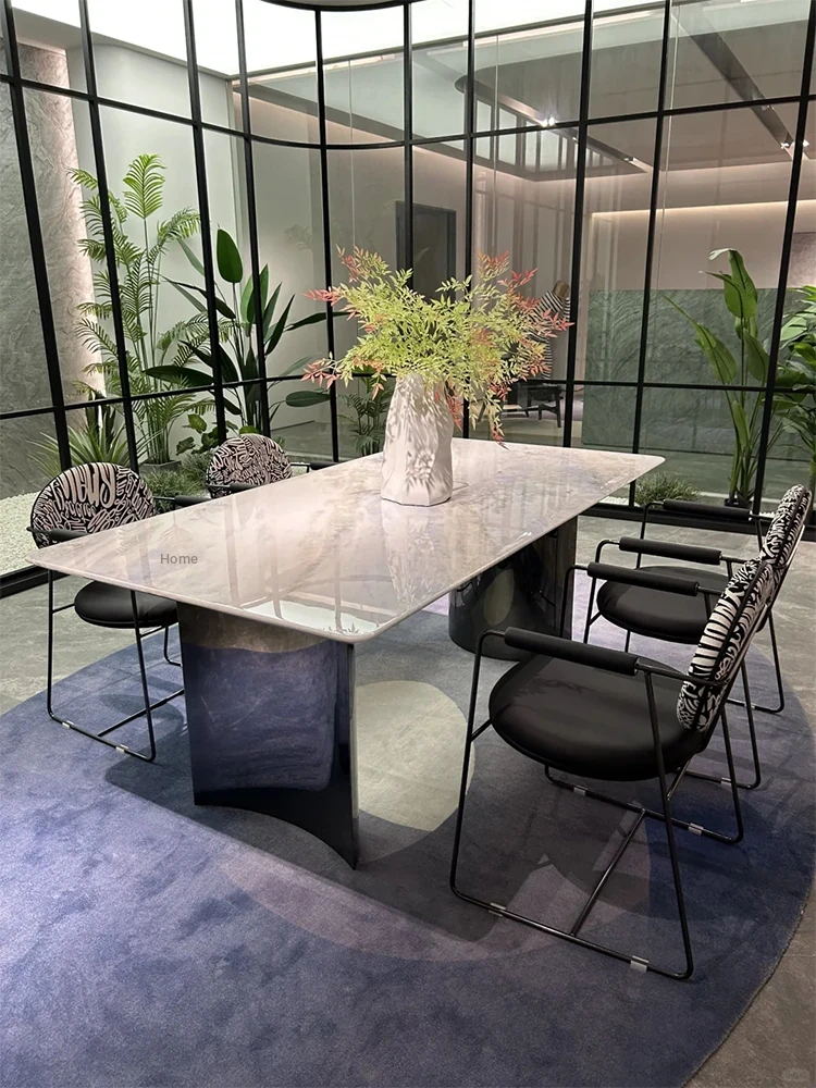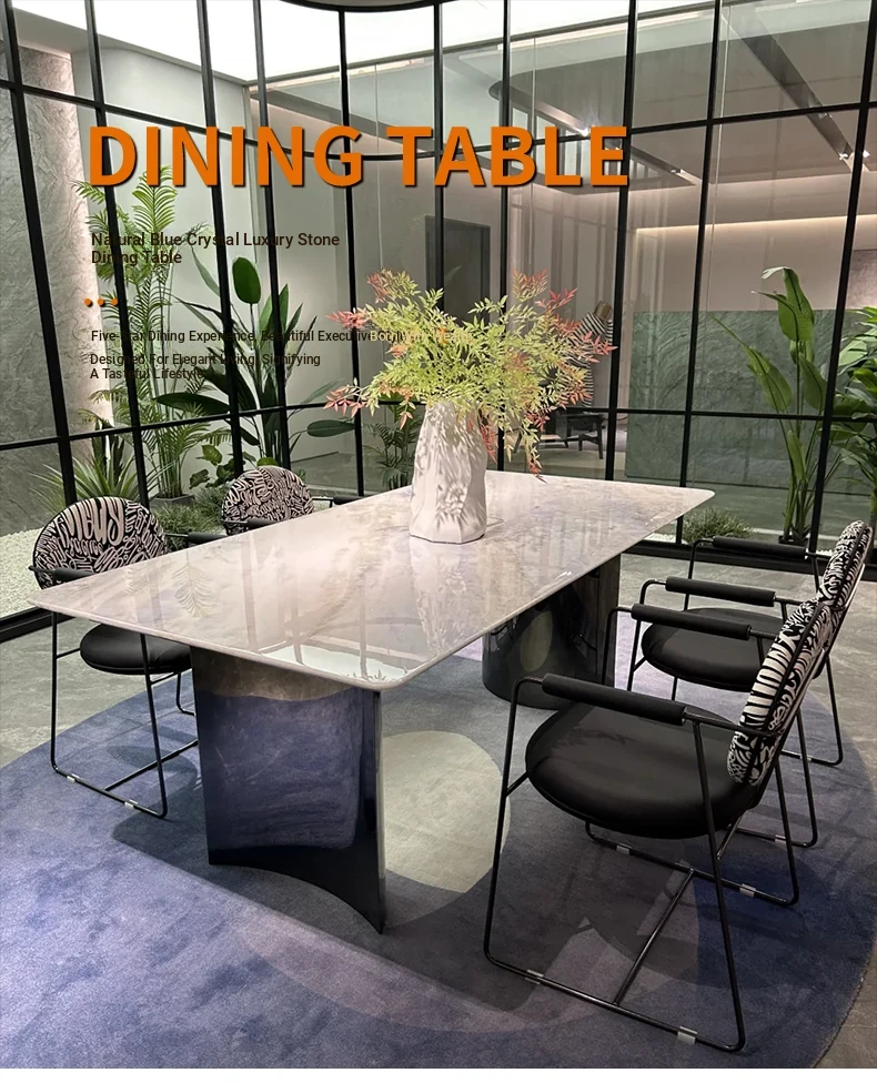 86.61in*39.37in +6 chair Blue Crystal Luxury stone (10 for one fake)