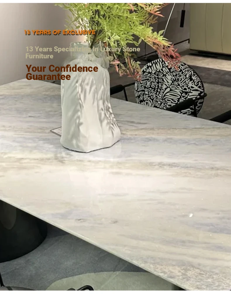 78.74in*35.43in +6 chair Blue Crystal Luxury stone (10 for one fake)