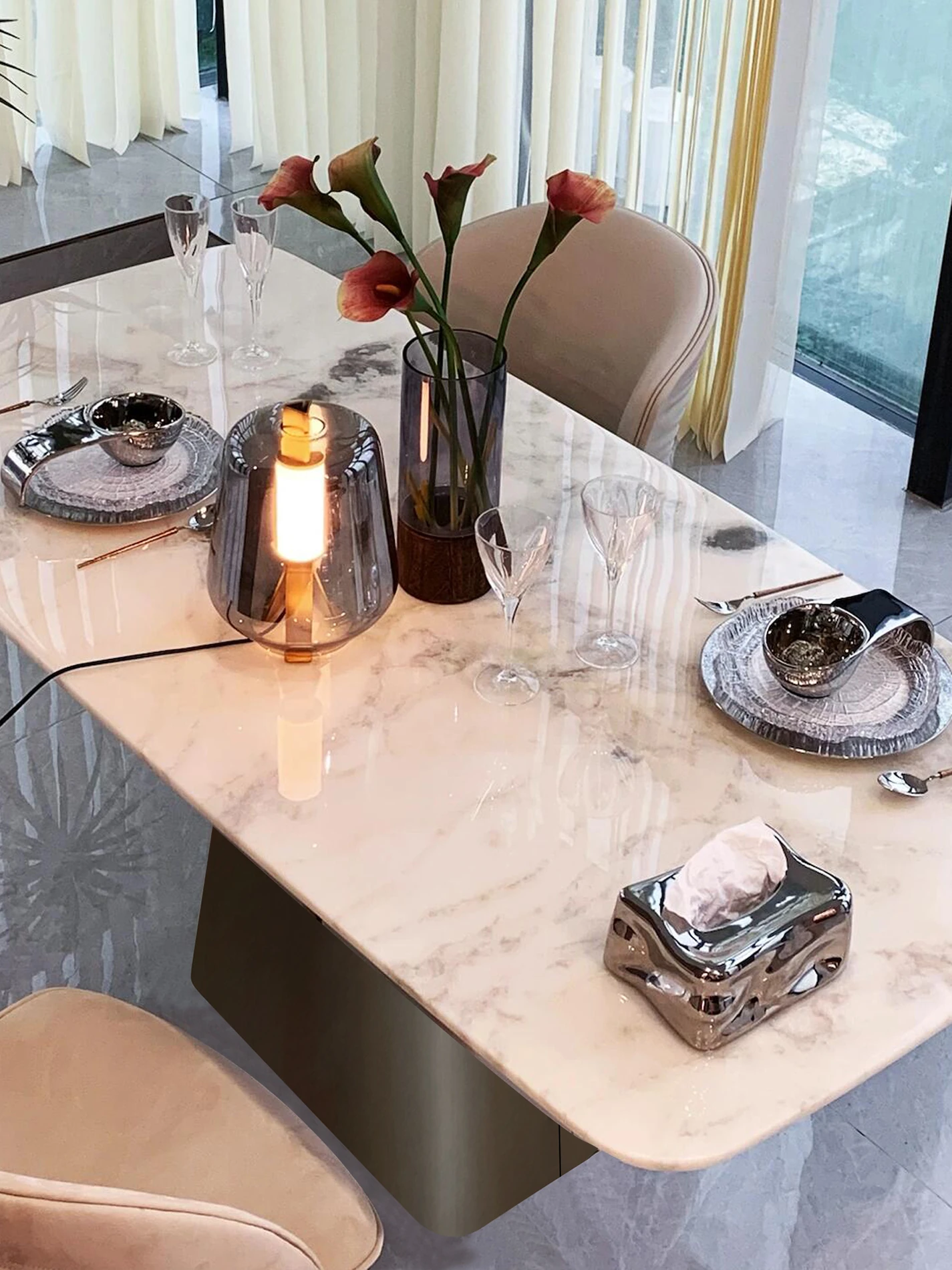 55.12in*31.50in Natural Fendi White Luxury Stone Dining Table (10 for Fake)