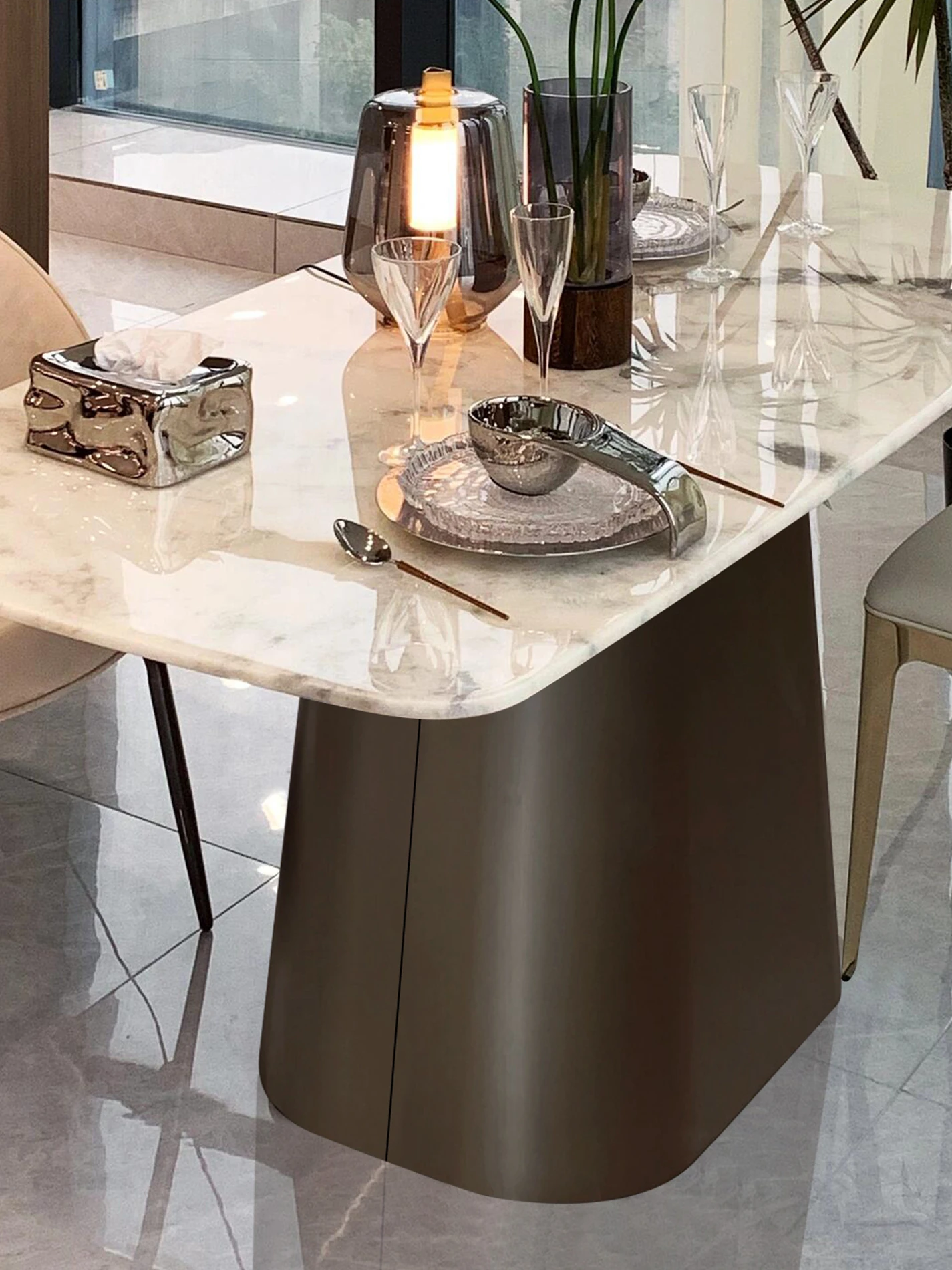 86.61in*39.37in +8 Chair Fendi White Luxury Stone Dining Table (10 for Fake)