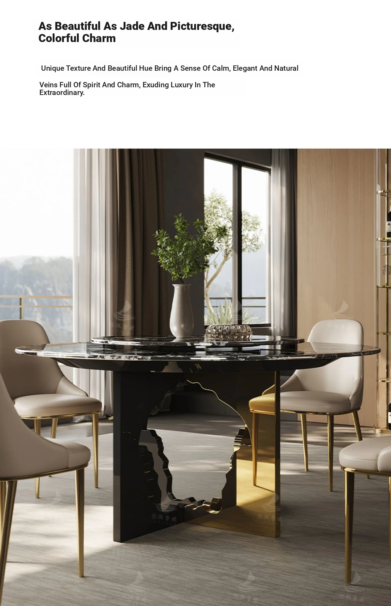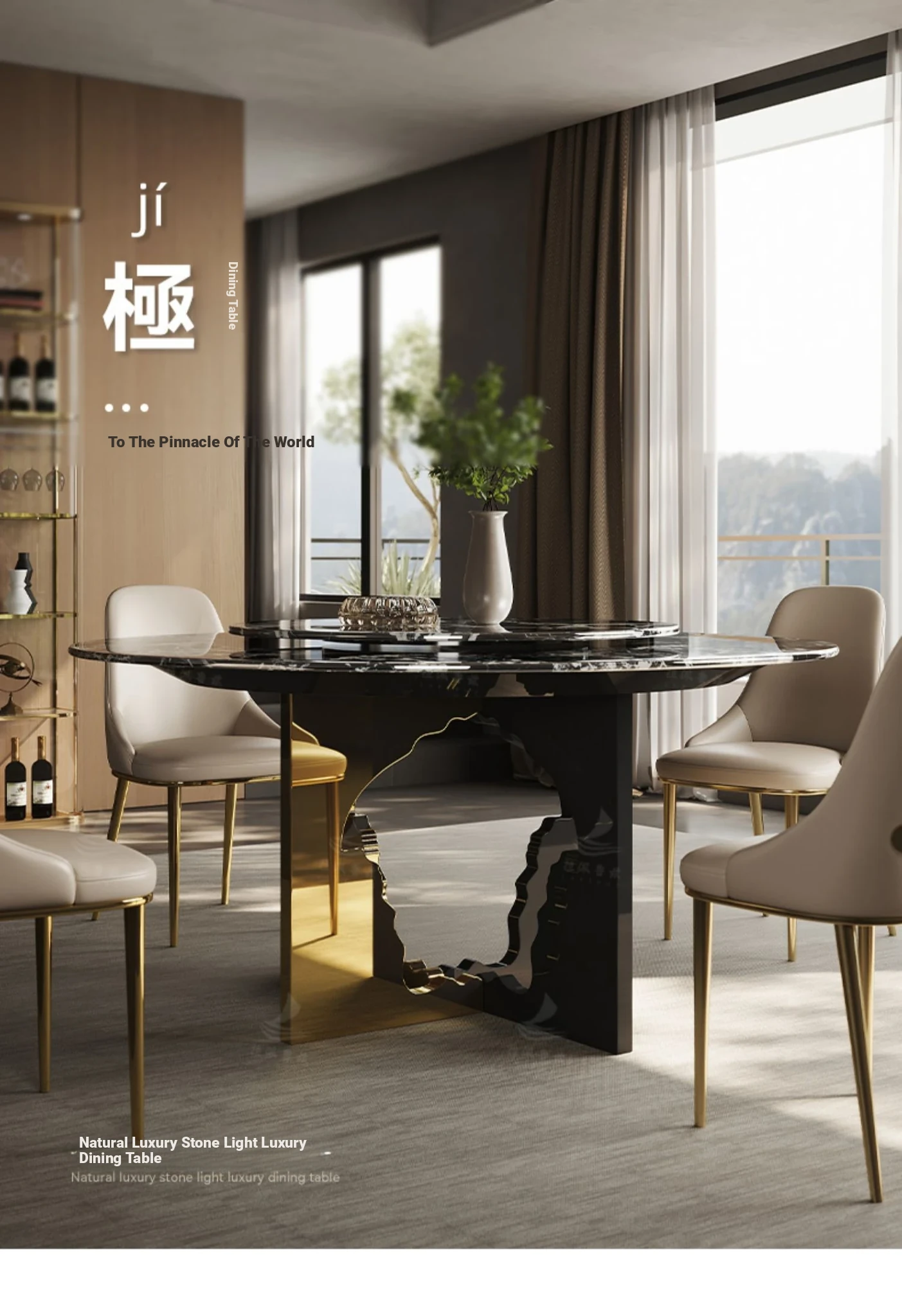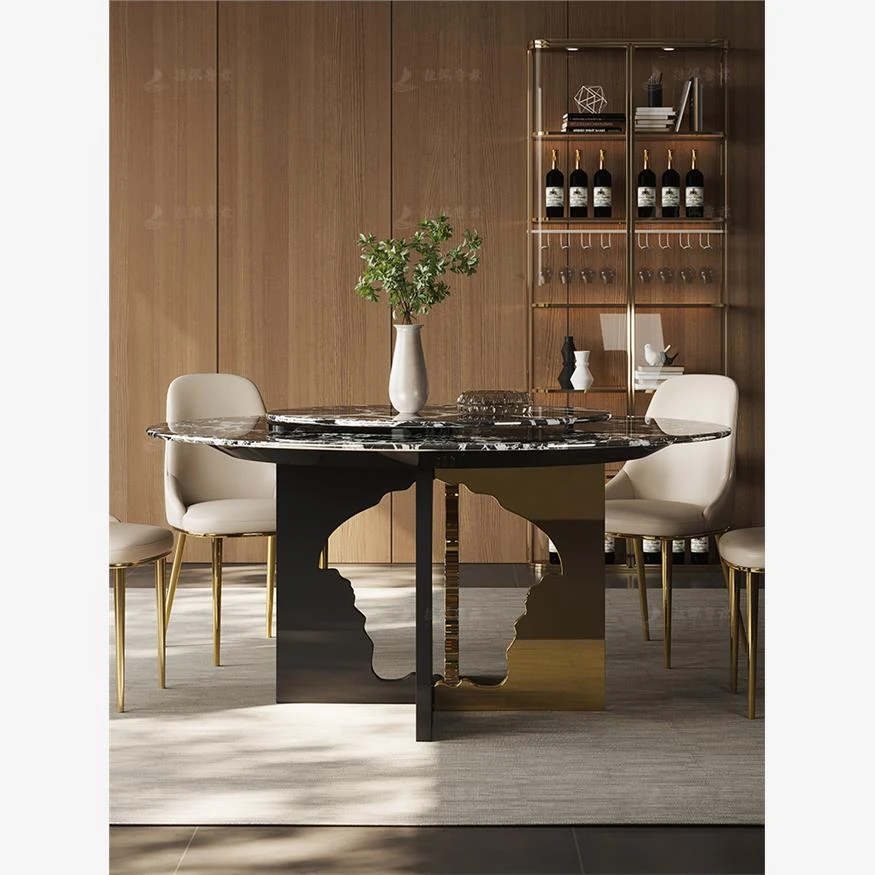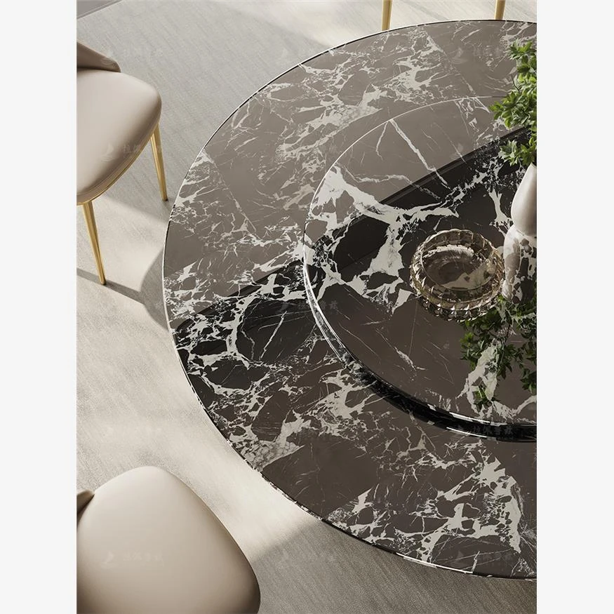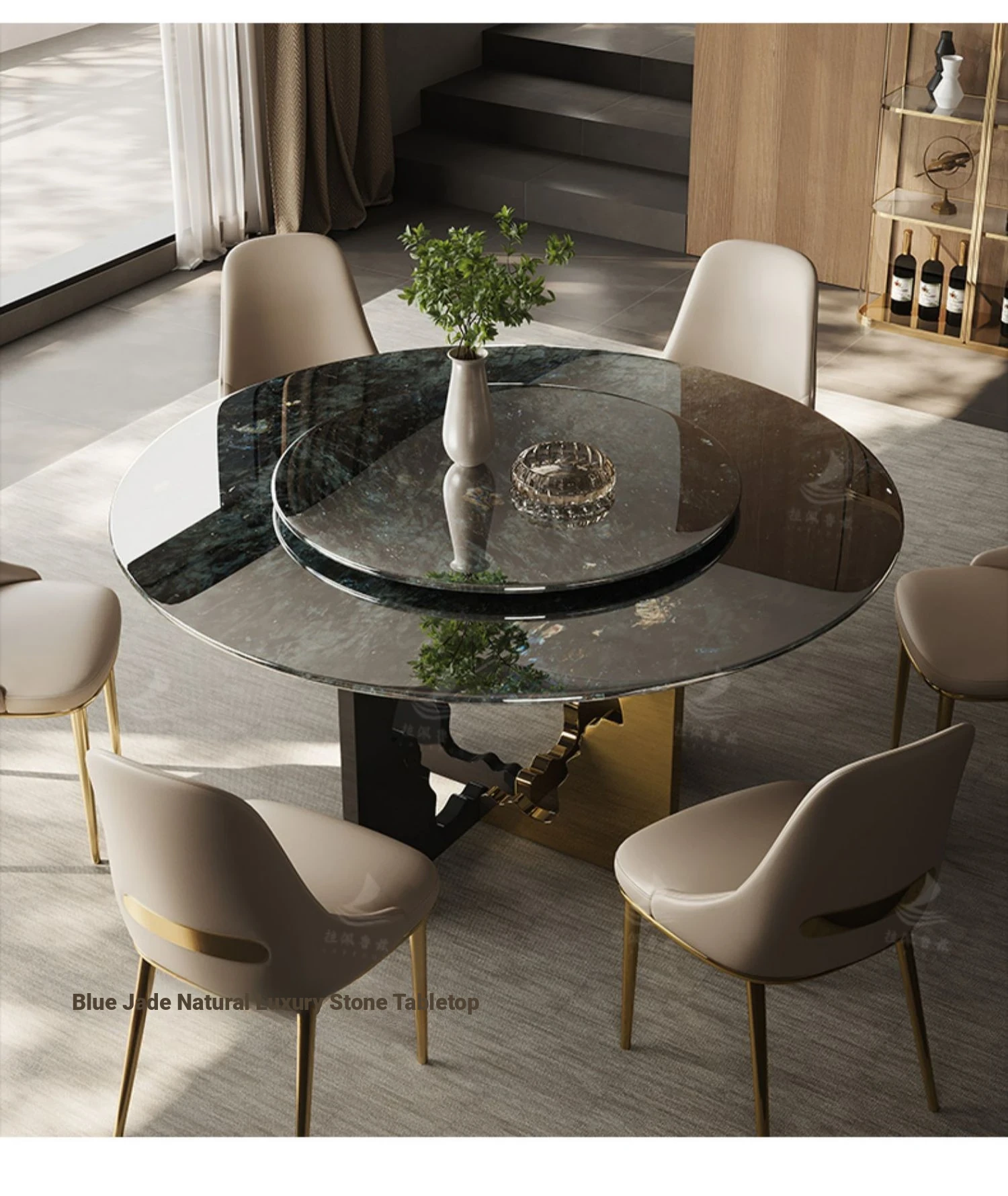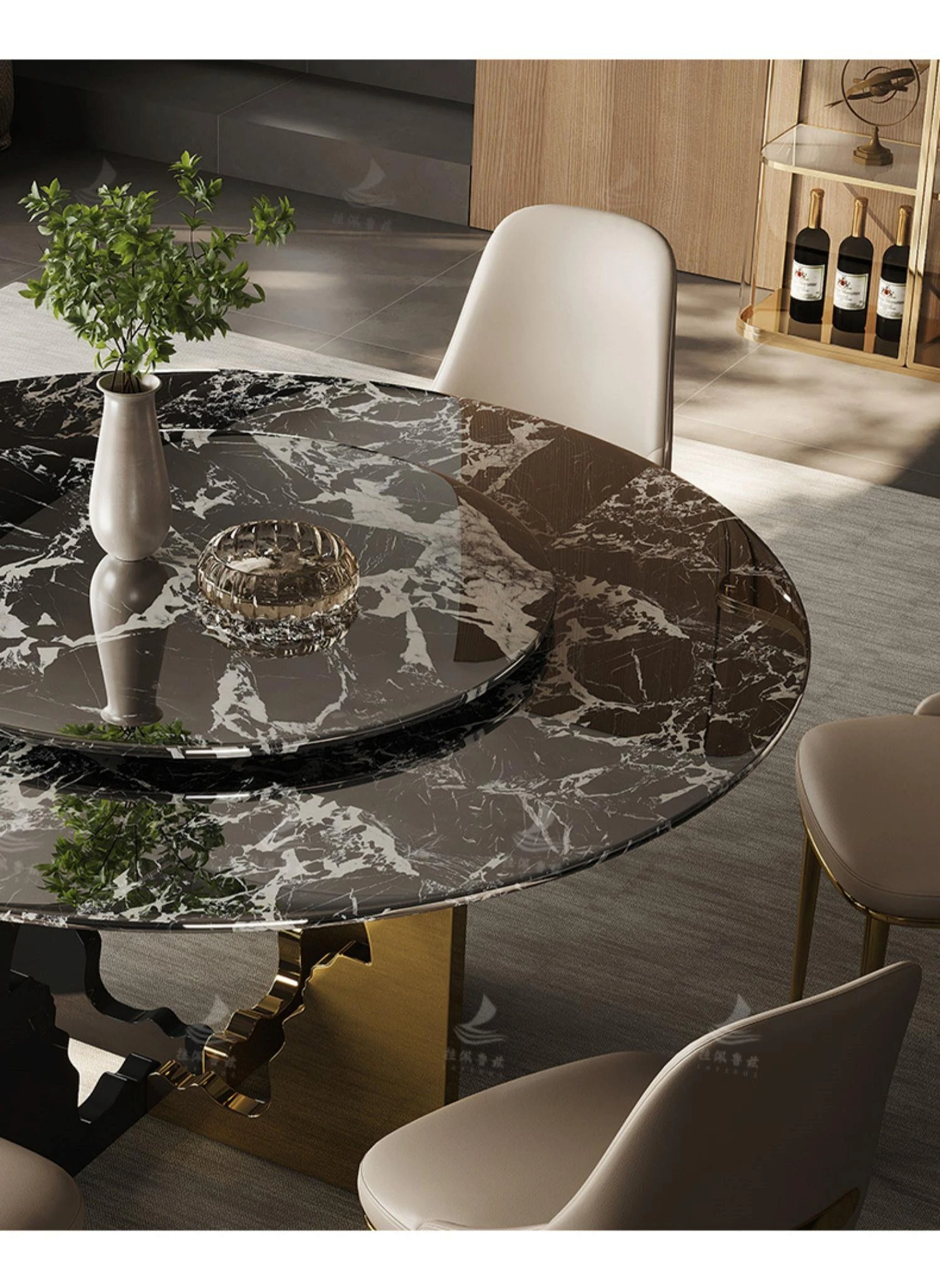 Luxury Natural Marble Dining Table and Chairs Set - Modern Minimalist Large Round Table for High-End Villas and Home Use, Perfect for Elegant Dining Experiences