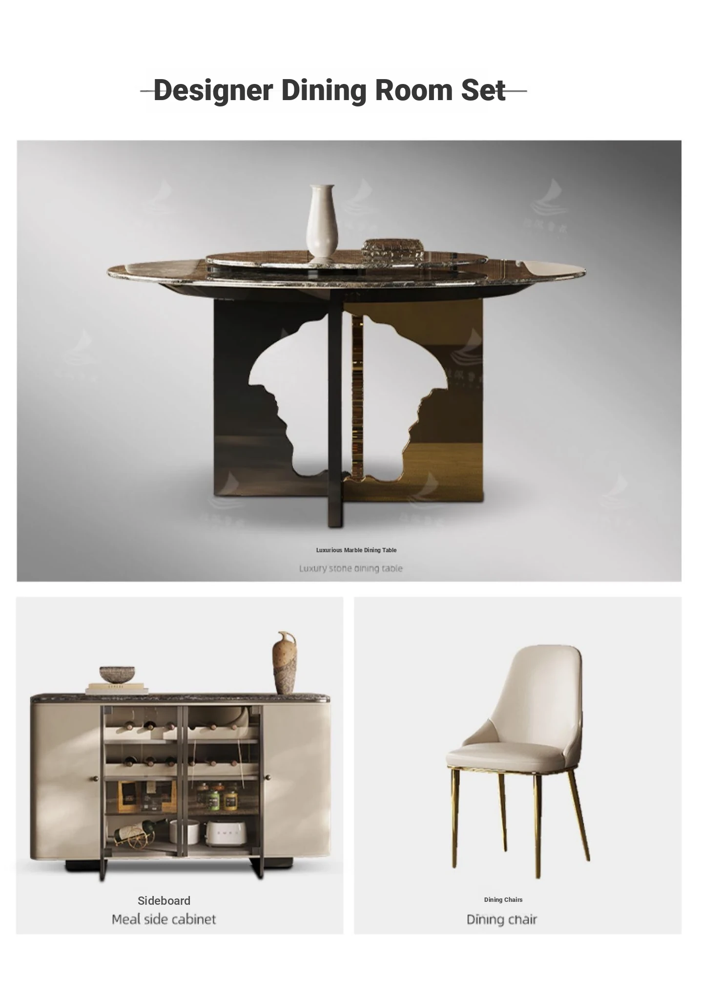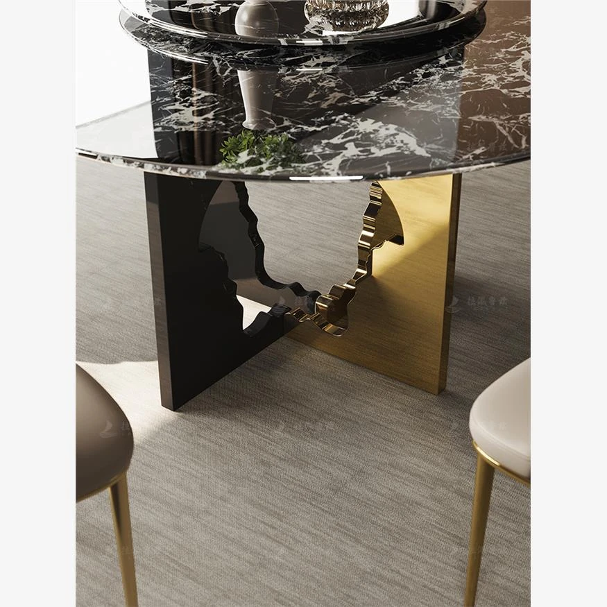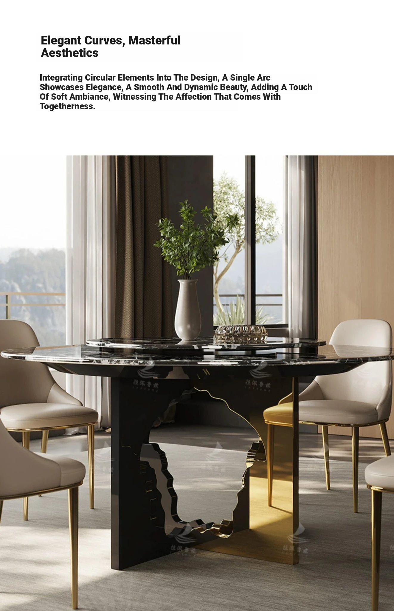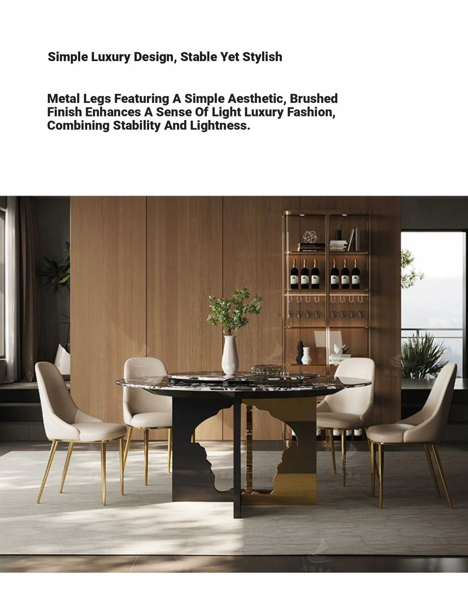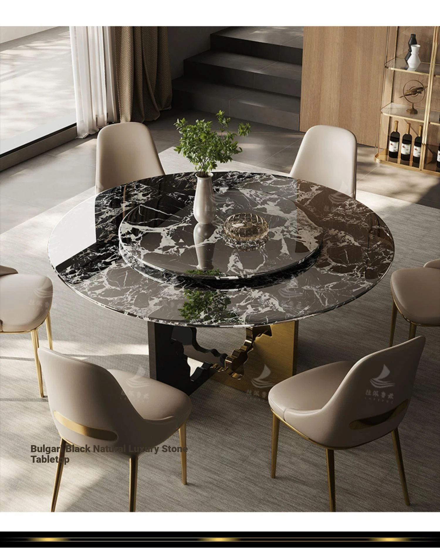 Luxury Natural Marble Dining Table and Chairs Set - Modern Minimalist Large Round Table for High-End Villas and Home Use, Perfect for Elegant Dining Experiences