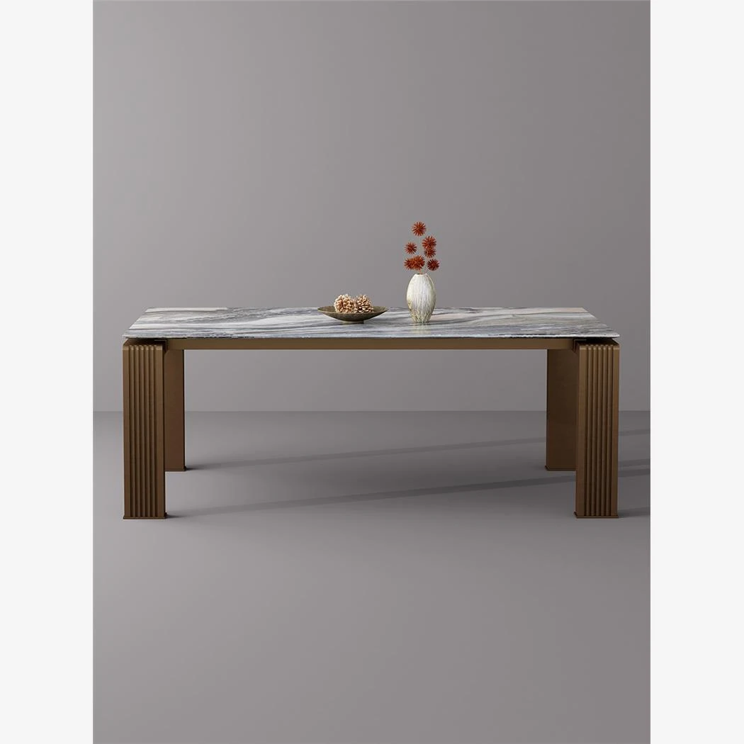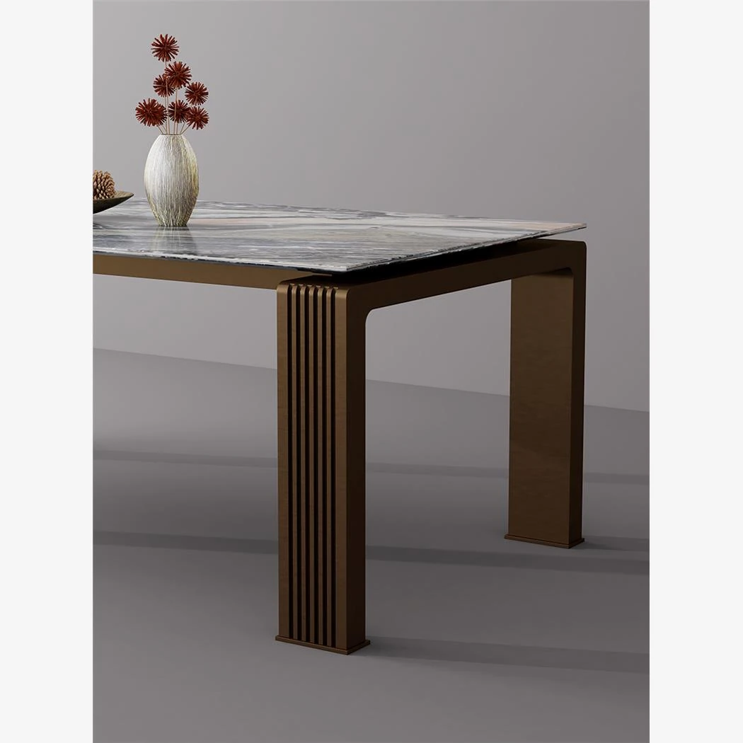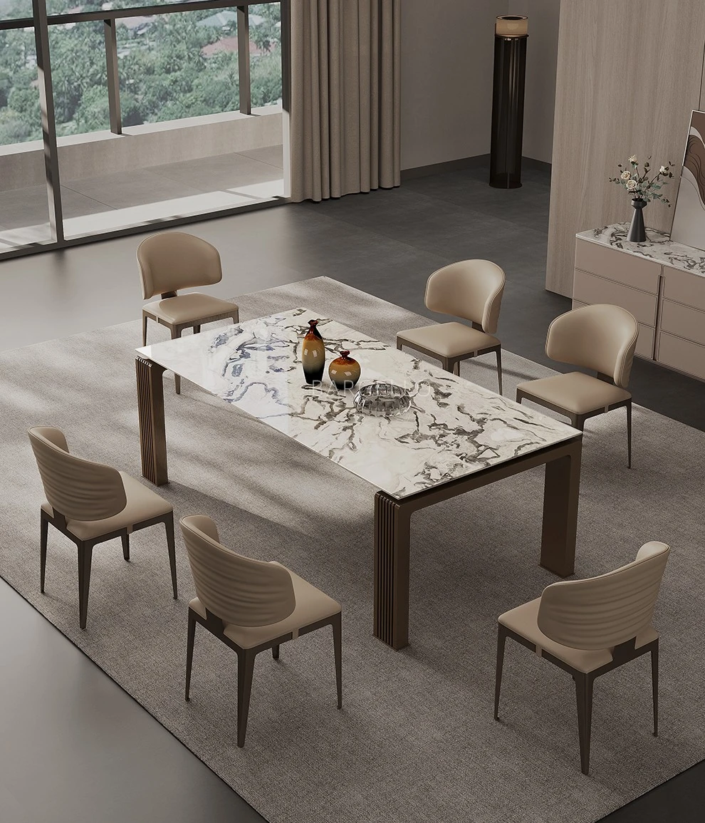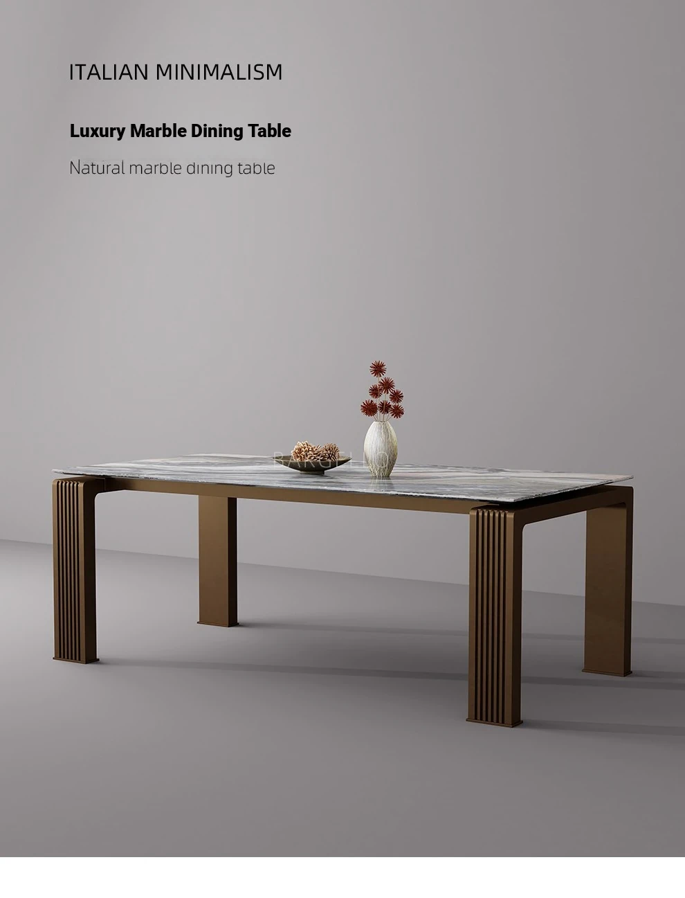 Luxury Natural Marble Dining Table - Modern Minimalist Italian Design with Walnut Accents for Home Decor - Perfect for Sophisticated Living Spaces