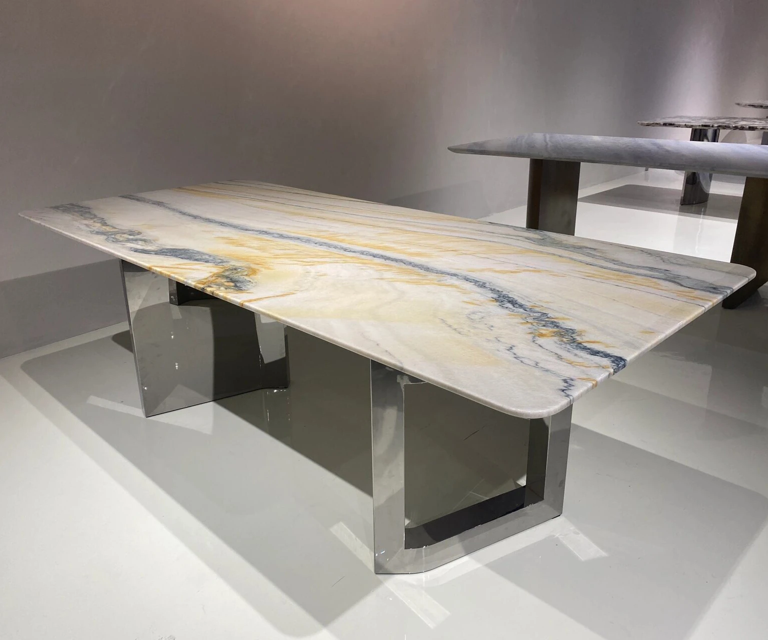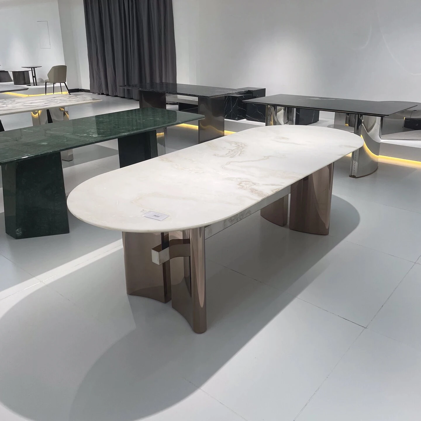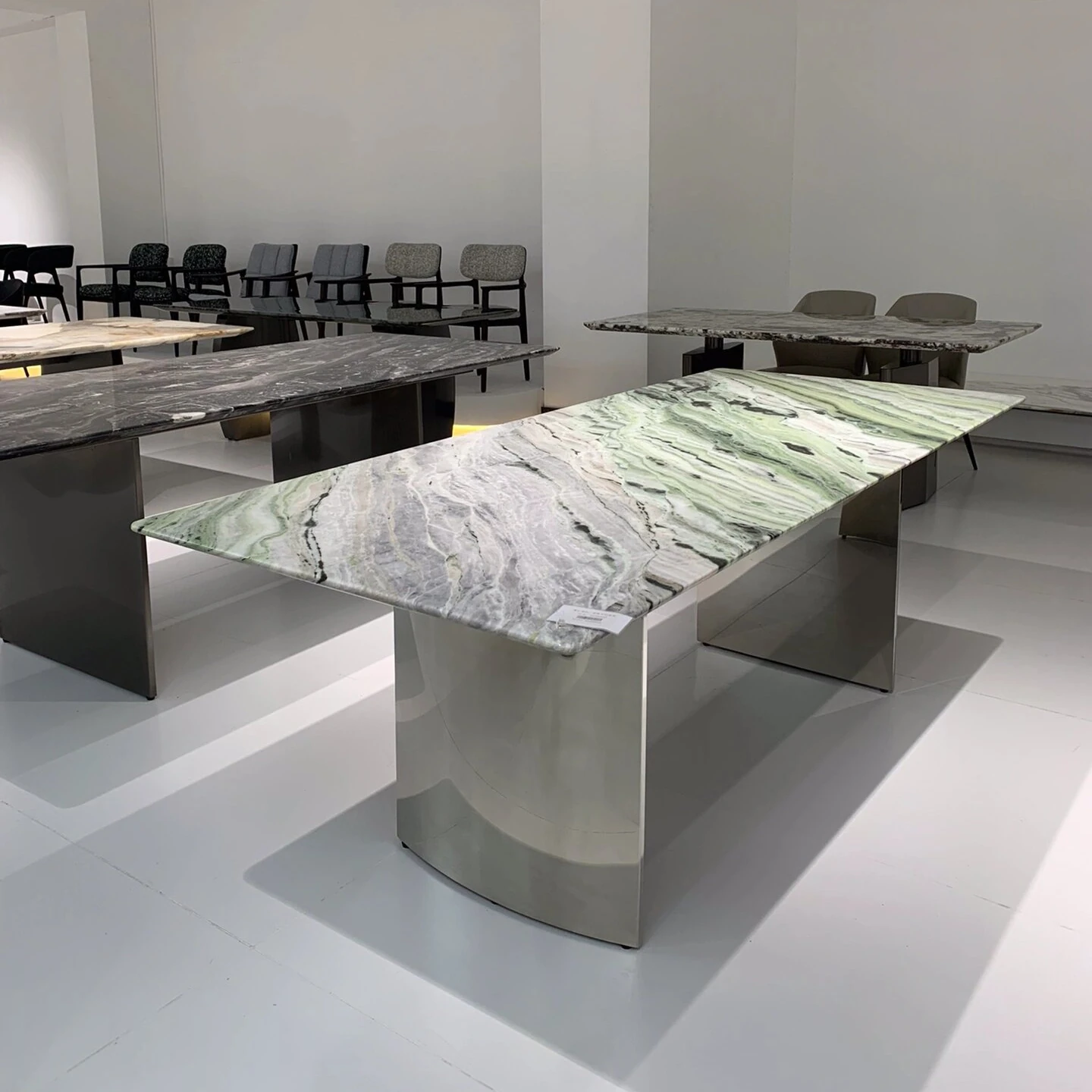 Luxury Natural Marble Dining Table - Modern Minimalist Long Table for Villas and Spacious Homes, Designer-Approved Dining Set for Elegant Living