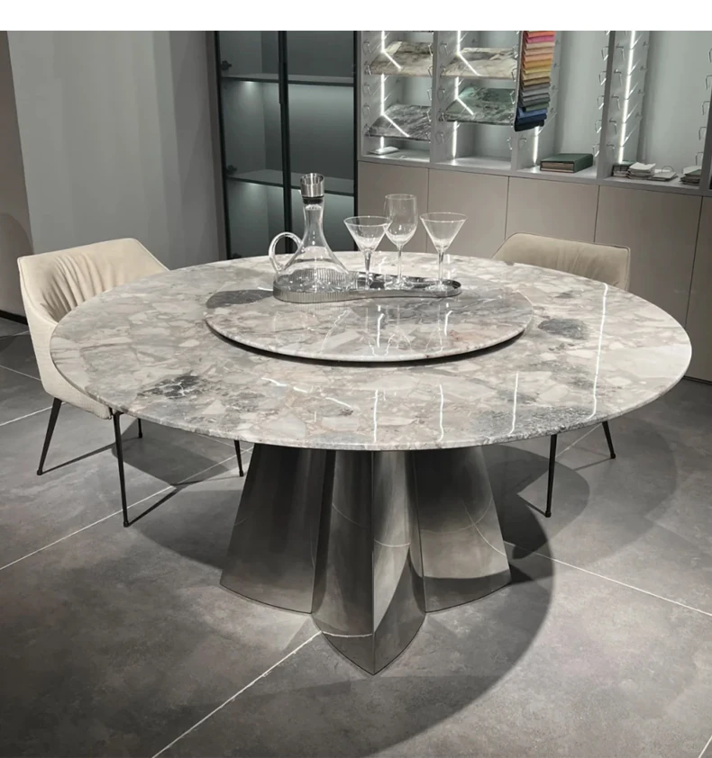 1.8+47.24 in Natural Oreo Grey Luxury Stone Dining Table (Ten for Fake)